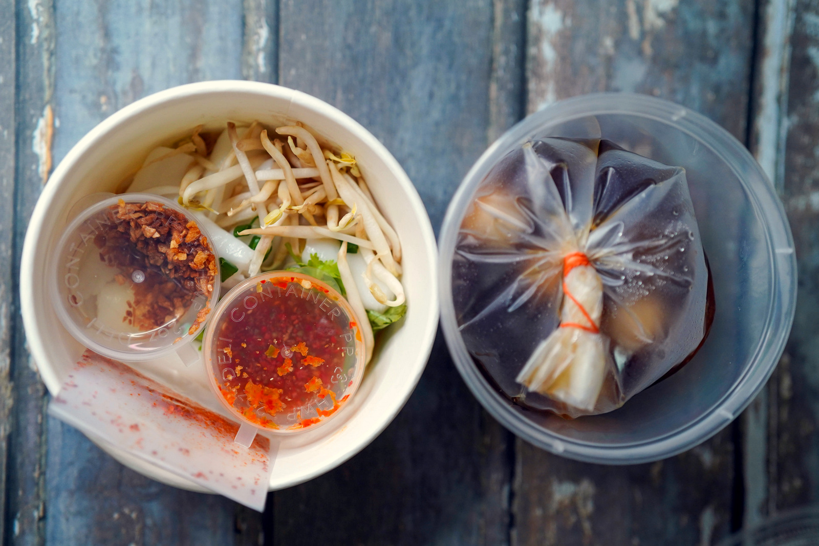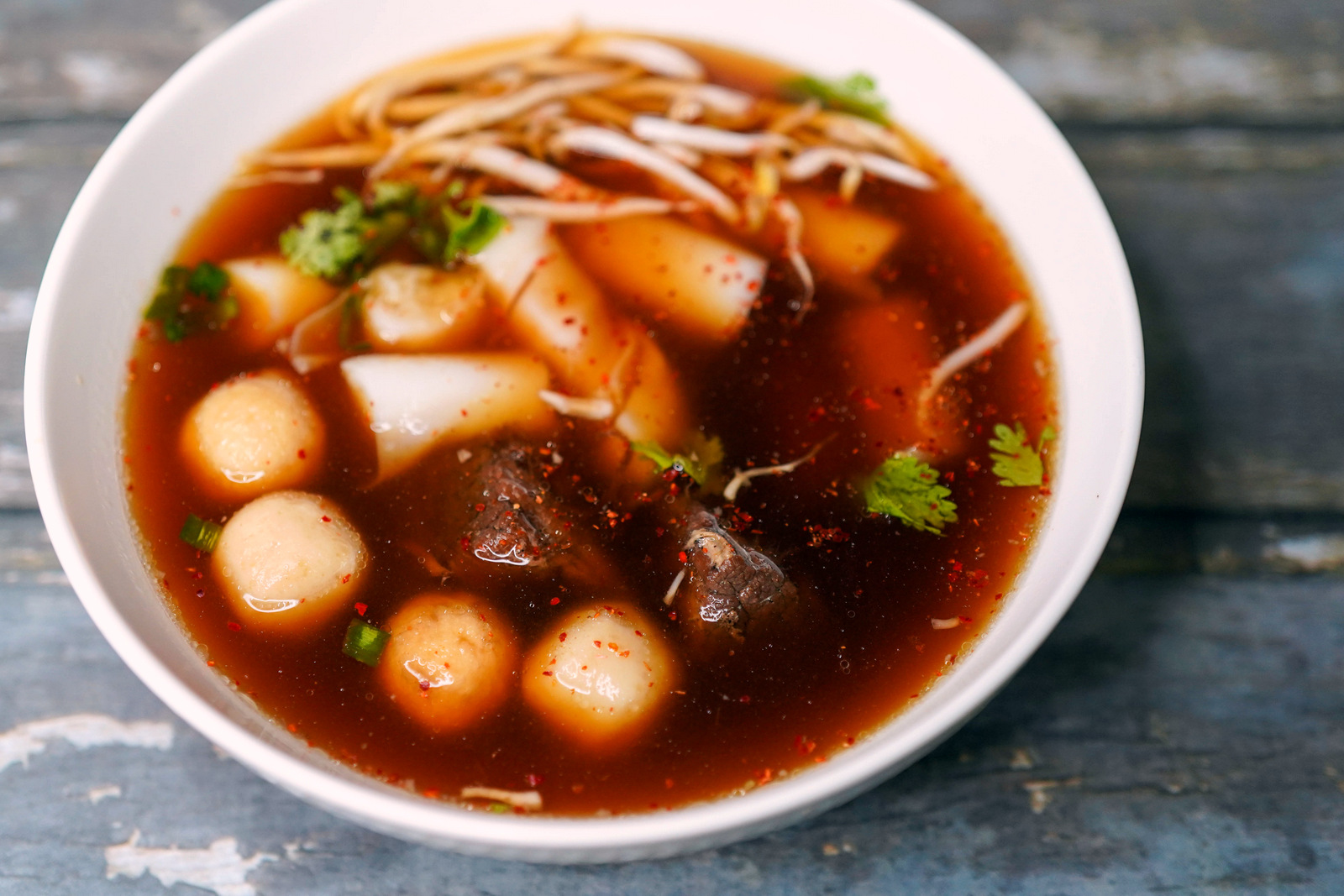 The Beef Kway Chap (RM15) is a no-pork alternative to the Yaowarat staple of Bangkok's Chinatown, with a robust beef broth whose aroma is apparent even while you're unpacking the meal. Rolled flat rice noodles offer a soft, soothing base for the meaty flavour, bolstered by beautifully succulent braised beef beneath the surface, a nourishing lunch with fish balls, beansprouts, coriander and chopped red chillies.