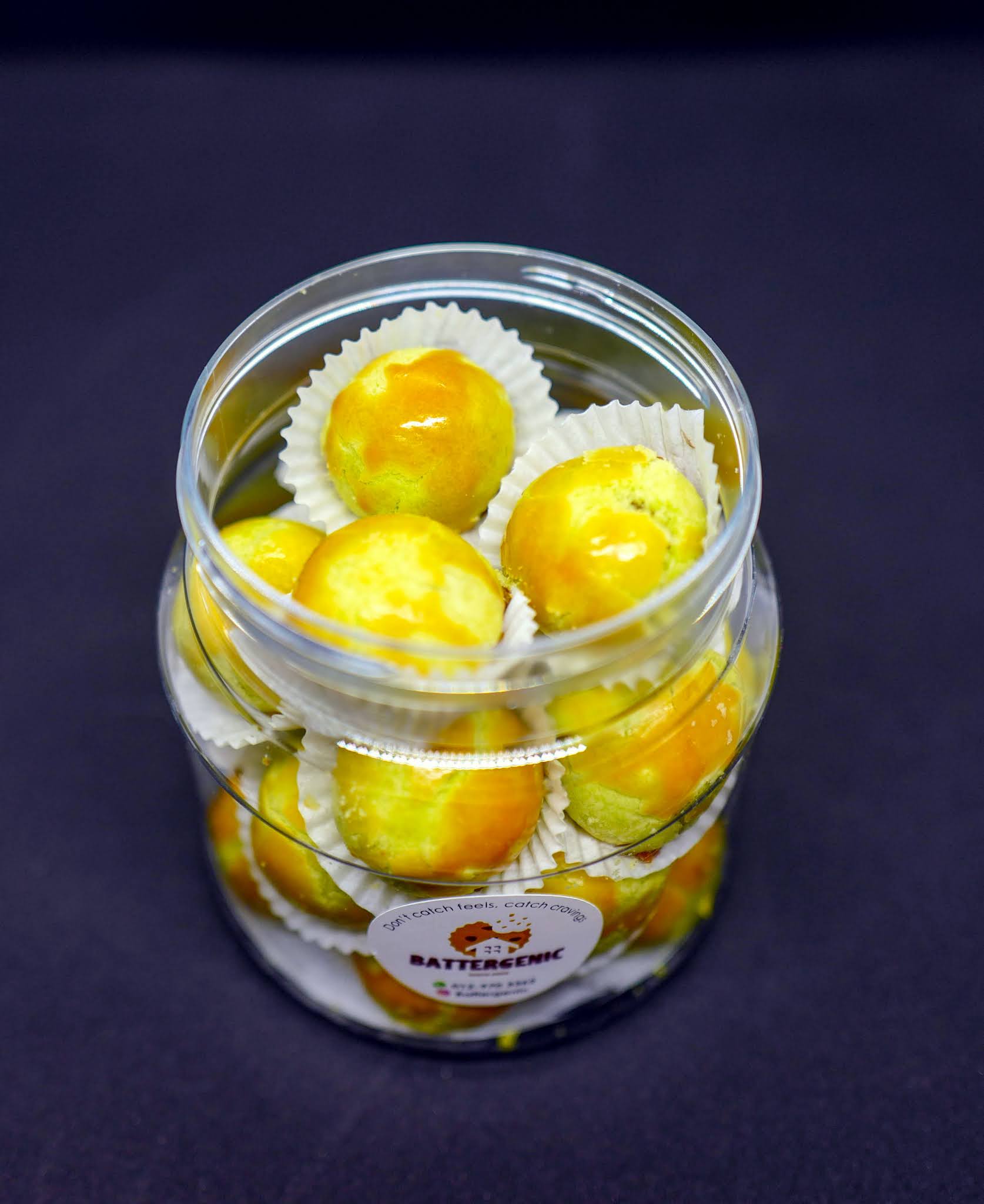 Battergenic turns the traditional ondeh-ondeh into tantalising tarts, surrounding the stuffing of freshly grated coconut with gula Melaka in fragrant pandan-infused pastry instead of the more familiar glutinous rice cakes. Flaky and sweet within, buttery-crisp and crumbly outside - we can't stop popping them into our mouths (RM25 per tub).