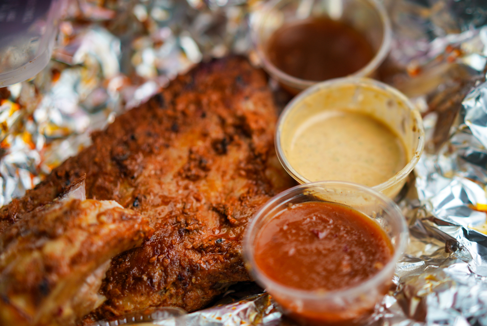 The ribs surface in chunky, fleshy slabs, thickly slicked in sweet-savoury BBQ sauce, served smoking-hot to order. The belly is full-bodied too, flavourful with a luscious layer of fat.