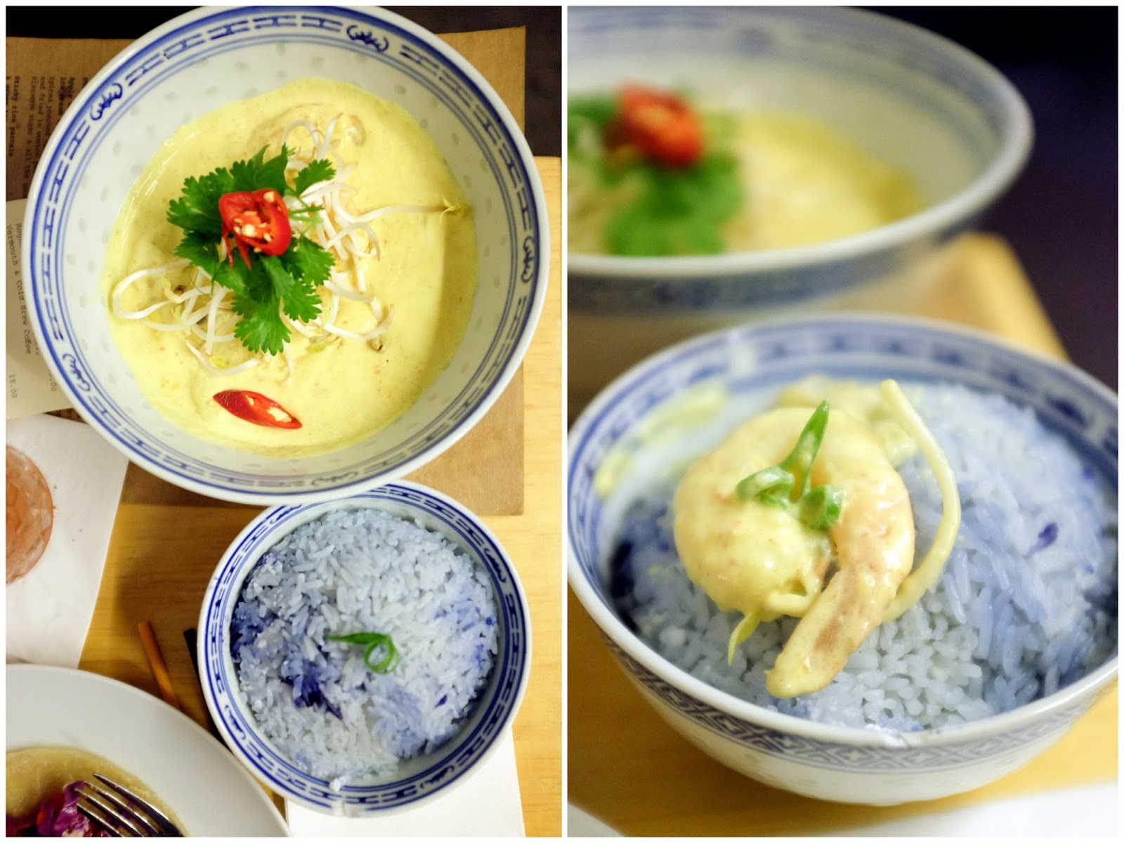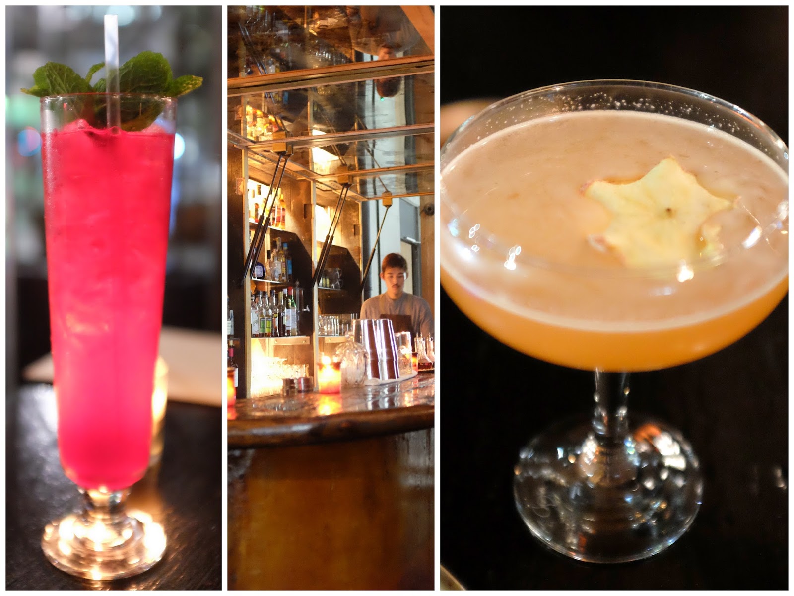 Madame George puts its own spin on Asian cooking - hoisin-marinated pork with house-pickled cabbage on fried roti shares the menu with a pairing of butterfly pea-dyed coconut milk rice & laksa paste prawns; the muted flavours & not-quite-there textures won't necessarily impress those of us who live in Malaysia. Cocktails continue the theme - the Caesar-san comprises clamato juice with soy, wasabi & pickled bean.
