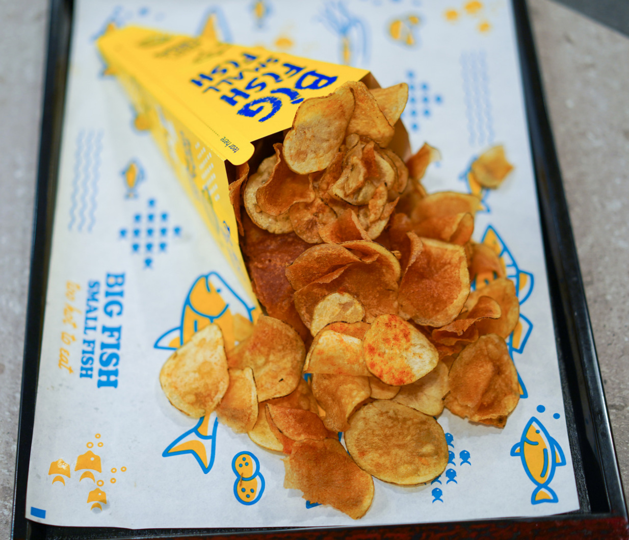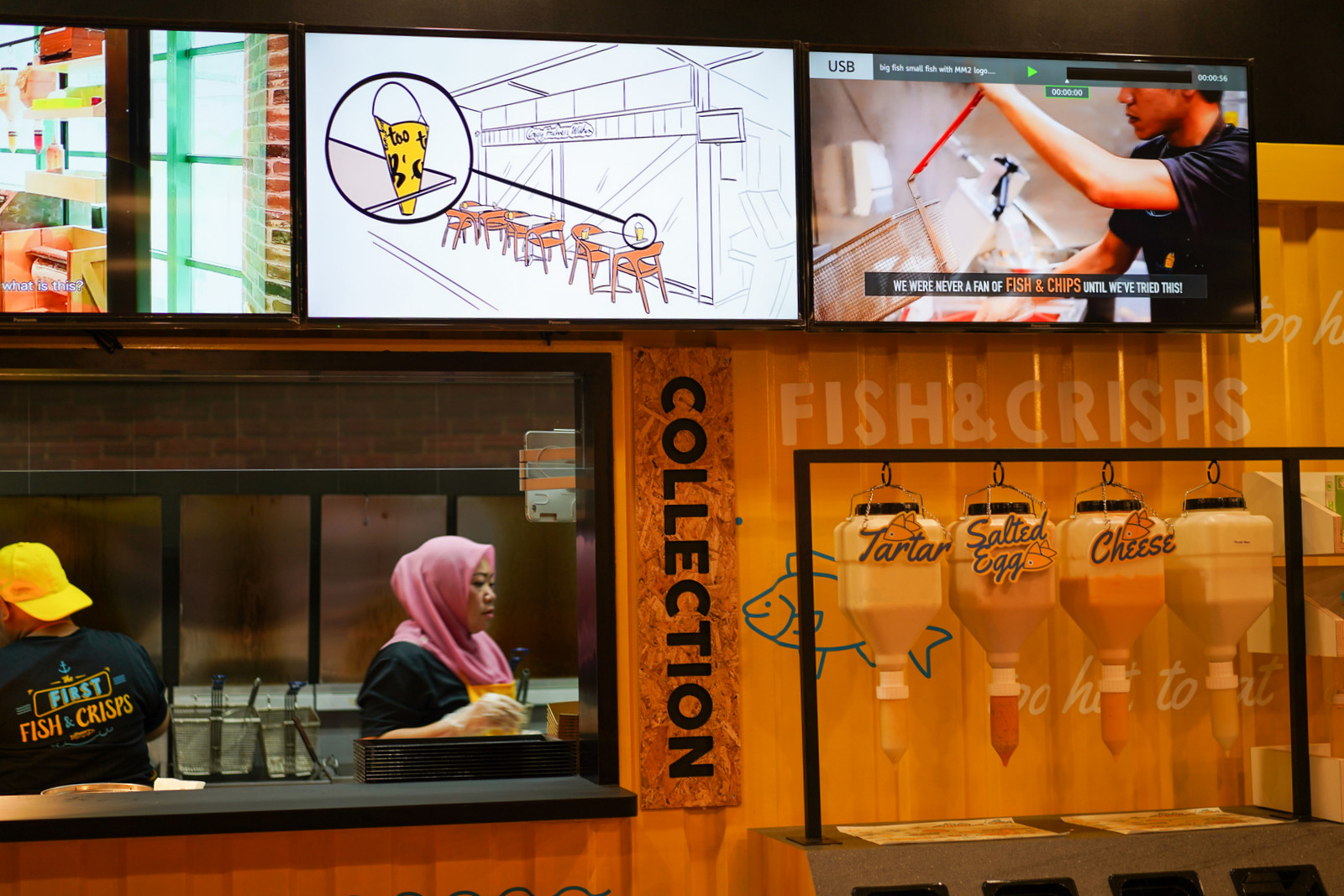 A substantial catch awaits fans of finned fare at Big Fish Small Fish in Bandar Sunway, the first Malaysian offshoot of a Singaporean brand of restaurants with a setting inspired by shipping containers. Our order of sea bass (RM17.70) came out chunky, crunchy to the battered bite, concealing hot and moist flesh within, piled with plenty of potato crisps (dory and salmon are the other fish options available). Customers can help themselves to a variety of sauces as dips for the crisps, in flavours like salted egg or cheese.