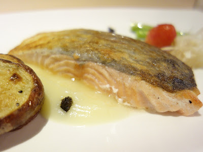 Crispy-skin, sous-vide salmon, scented with truffle oil (RM36++). Delicate & juicy.