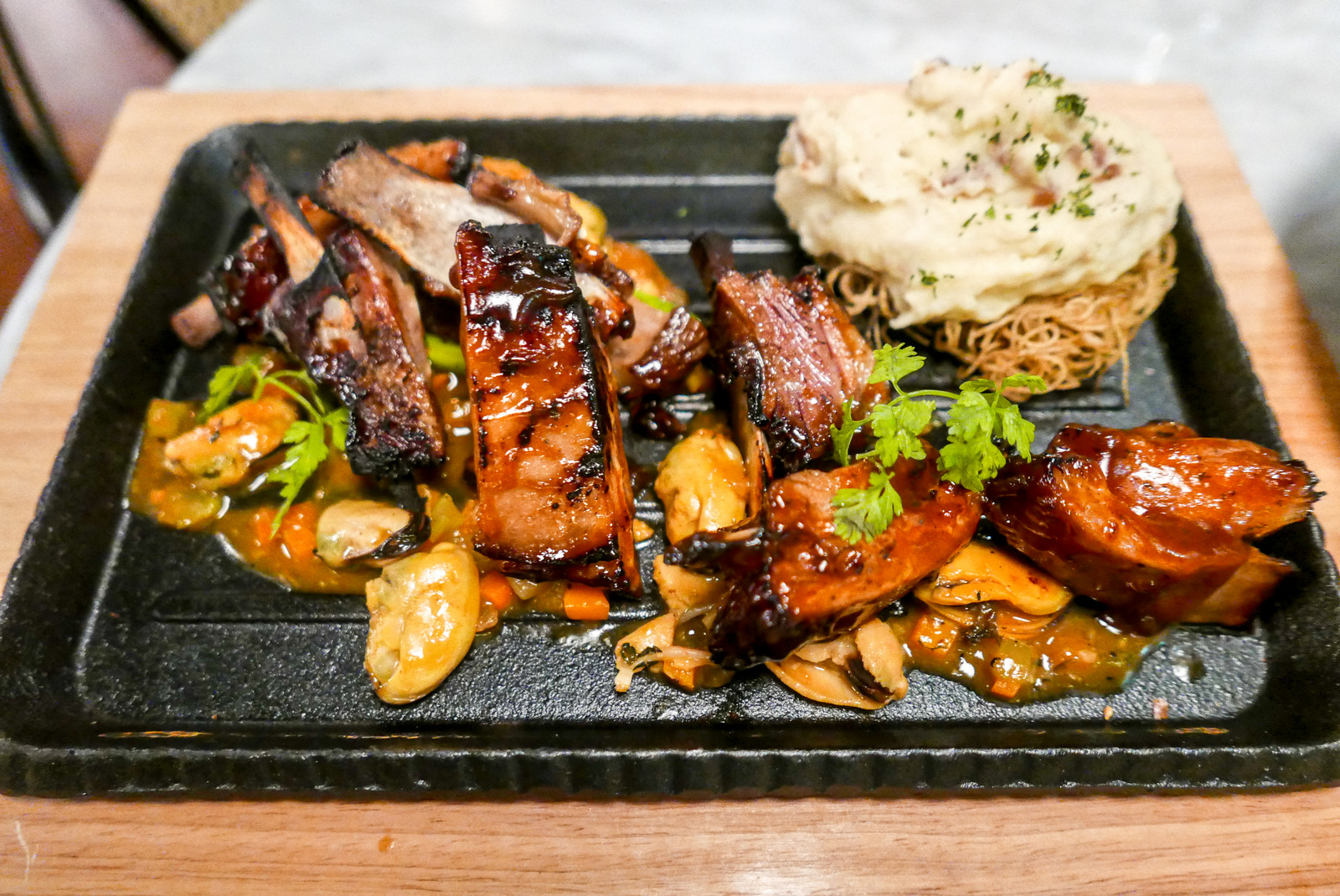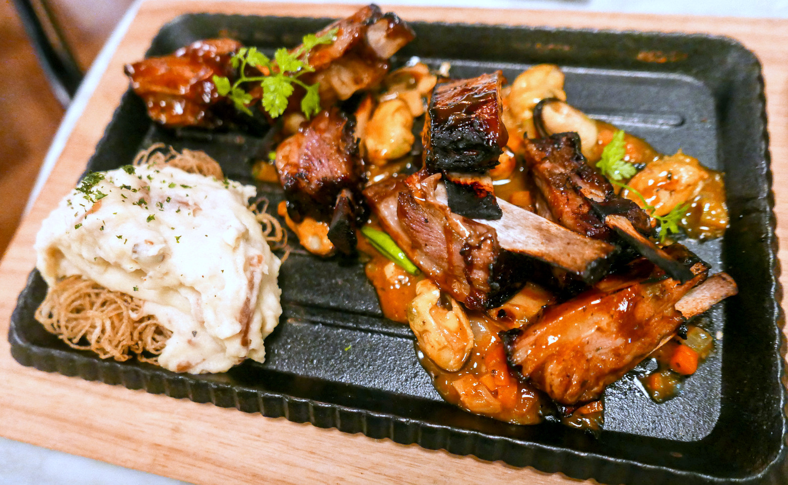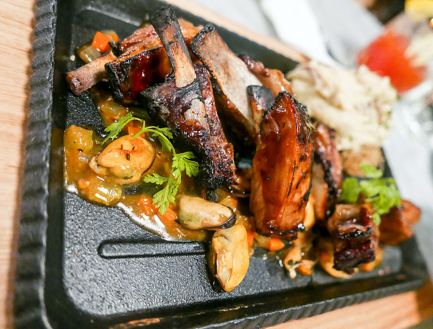 Lamb devotees can check out the barbecued Denver ribs (RM75), majestically meaty & succulent, with a beautiful sweet-savoury marinade & sauce that's meant to evoke the caramelisation of Chinese char siu. It had us licking our lips & fingers, almost ignoring everything else on the plate (for the record: masala onion potato mousse, crispy potato nest & mussel ragout).