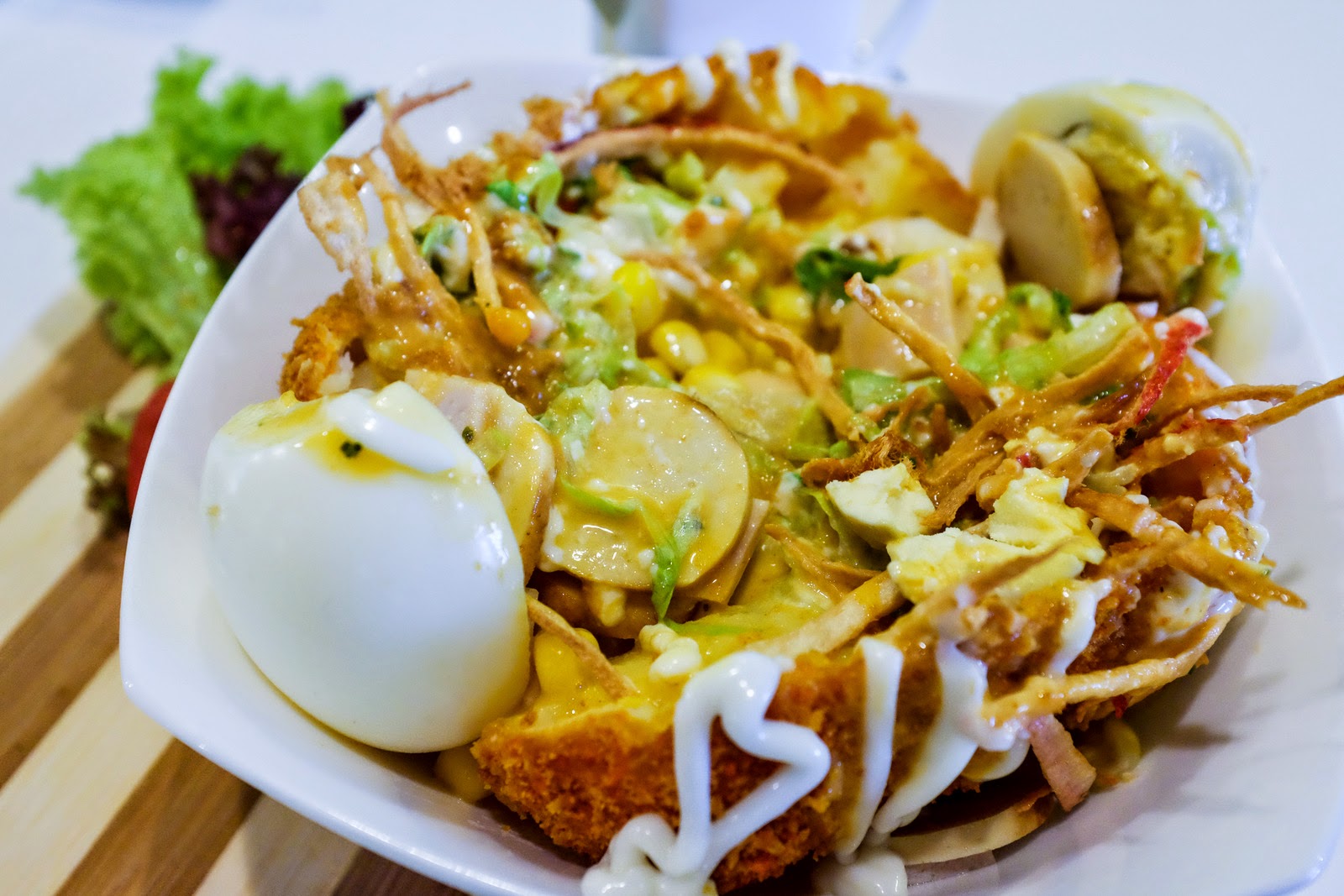 Bmon's food is as fun as its setting - the signature should-try is the mighty-hearty Hippo In The Pond (RM14.90 nett). Creative comfort food, a super-chunky, steaming-hot potato croquette, crispy outside & creamy within, stuffed with everything from chicken sausage slices to crab sticks & corn, complemented by a hard-boiled egg & cheesy sauce. Limited servings everyday.