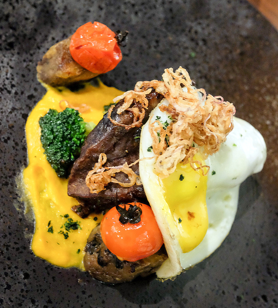 With Bill Withers & Louis Armstrong crooning from the speakers, move on to fish & chicken: The red snapper (RM58) is a heat-seeking missile of flavour, packed with nuance in each heady bite of its flesh, firmly on the right side of tenderness. The spring chicken (RM42) may taste less explosive in comparison but is still a paragon of succulence. Couple up with some drinks: Bonfire offers top-flight pairing recommendations of cocktails & wine - a vivacious Chateau Fondarzac complements seafood.
