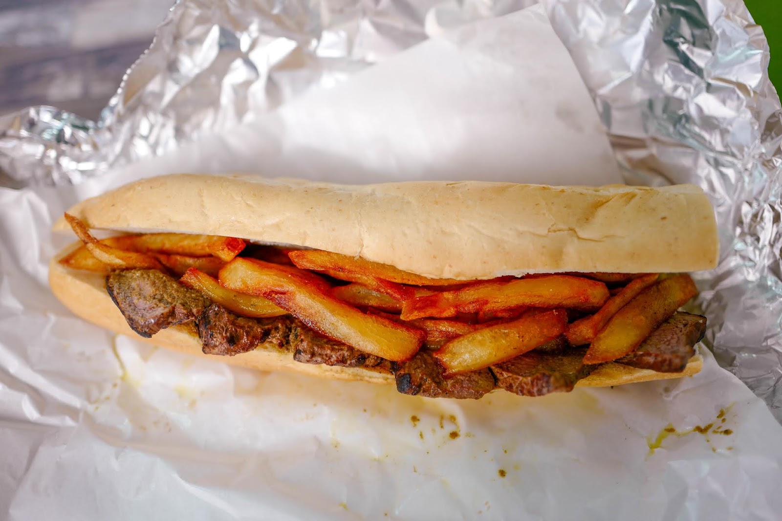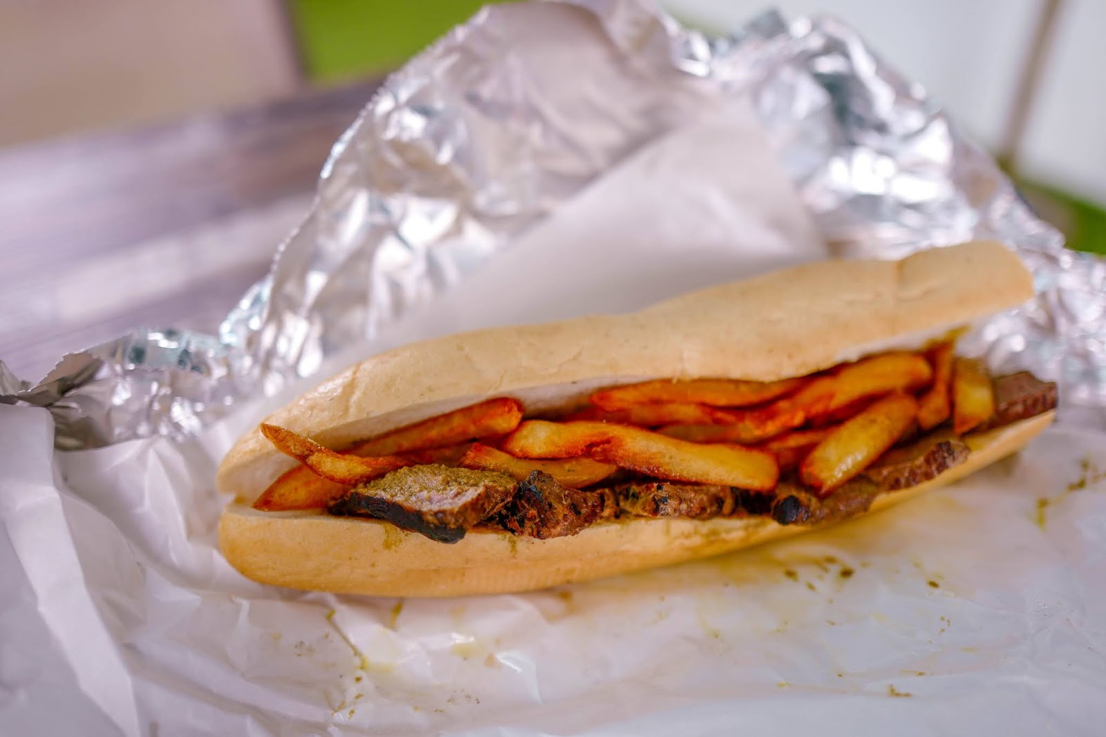Everything is assembled after you order. The seared striploin is oven-finished, the fries come out chunky and golden from high heat, rounded out with a sauce concocted with 15 secret ingredients (probably parsley, generously garlicky, beautifully buttery), layered together more than a foot long in a baguette for its trip to you.
