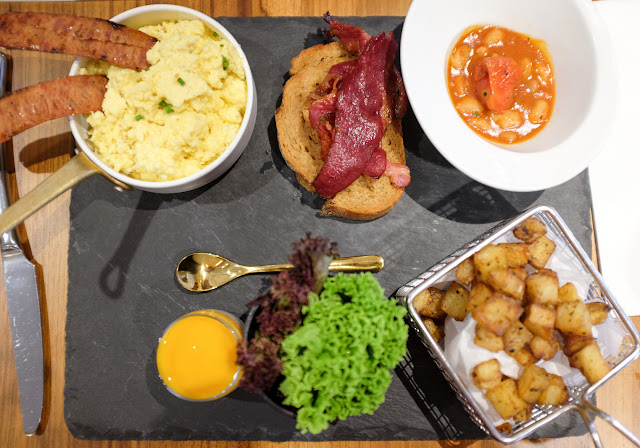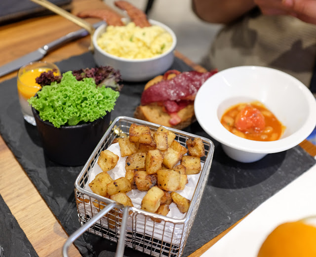 Palazzo Viva's Big Breakfast set (RM25 nett, including a glass of juice not pictured here) comprises a comprehensive, capably prepared collection of carbs, protein & fibre - scrambled eggs with sliced chicken sausage, beef bacon open sandwich, fried cubed potatoes, warm baked beans, a leafy side salad & even the thoughtful touch of a chilled dessert pudding to end with. Bonus: It's the perfect presentation for patrons who prefer each component of their meal to remain separate from one another.