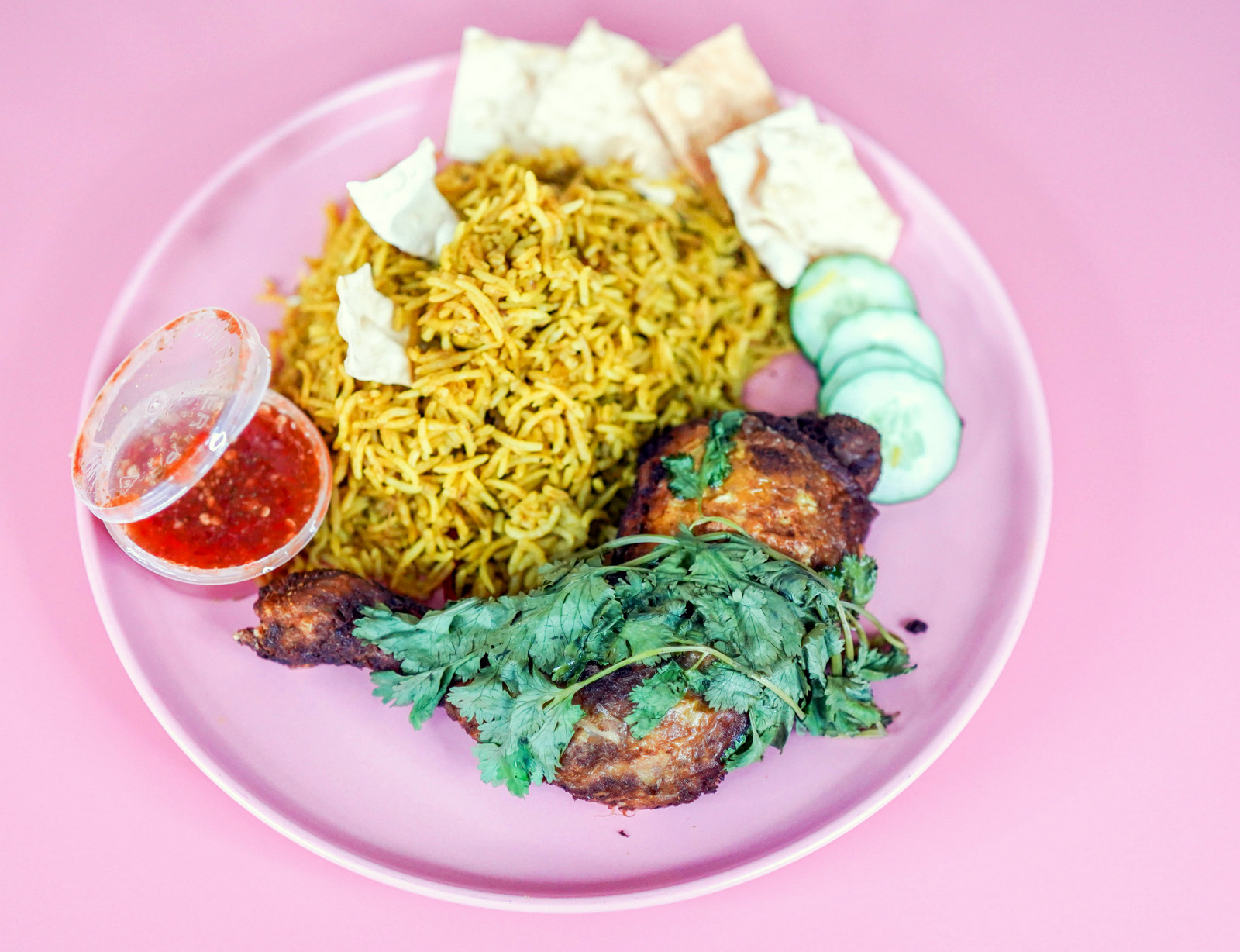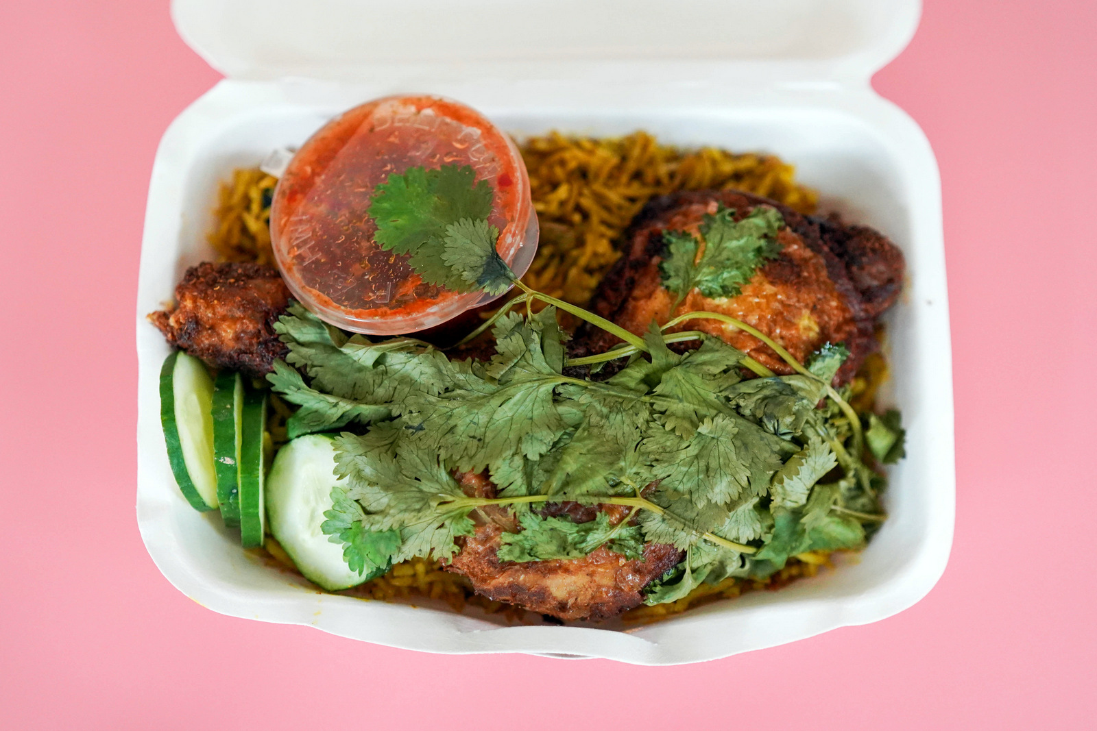 Billed as southern Thailand's equivalent of biryani, Bukuh's Nasi Khao Mok promises basmati that's heavily and sharply spiced, made even hotter with a sweet Sos Lejen chilli dip, plus a whole chicken leg, coriander, crunchy cucumber and crisp papadum for a complete, hearty meal that should interest fans of flavourful rice recipes (RM17.90).