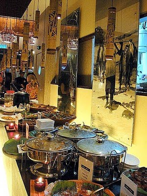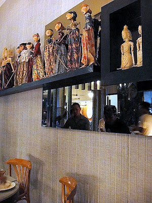 Bumbu Desa offers a seemingly authentic Indonesian eating experience: its staff members comprise exuberant Indonesian young men who chant intermittently while they cook and serve a staggering spread of simple fare.