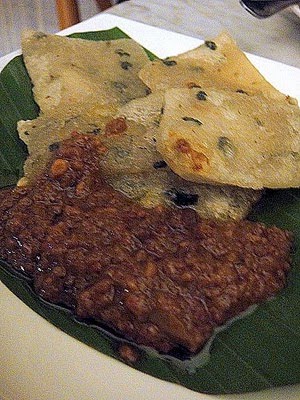 Cireng (fried tapioca flour). Thick, savory peanut sauce saved an otherwise bland platter.