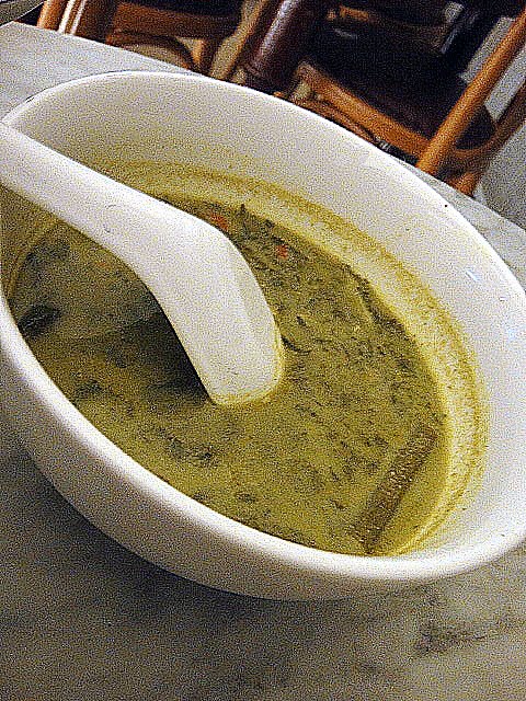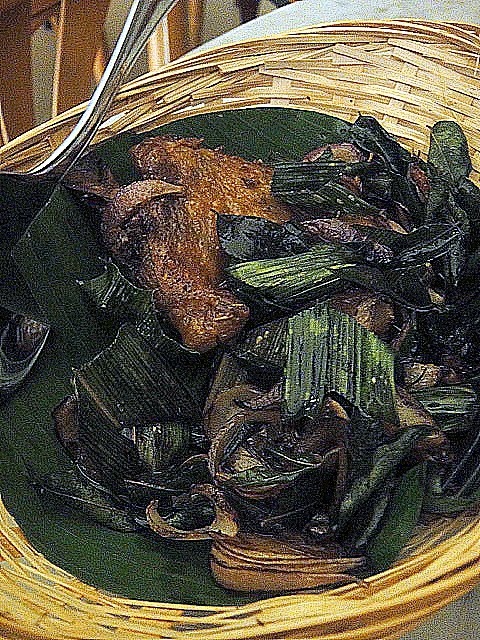 Daun Umbi Tumbuk (pounded cassava leaves & anchovies in coconut milk). A bit too watery for our liking. Definitely not a healthy veggie recipe.