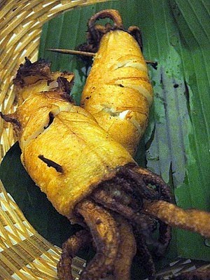 Cumi Goreng (deep-fried squid marinated in turmeric paste). Satisfyingly hearty and fragrant, but only recommended if you don't mind lots of chewing.
