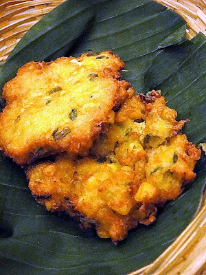 Pergedel, a crisp blend of sweet corn, egg & flour. An addictive snack, not oily at all.