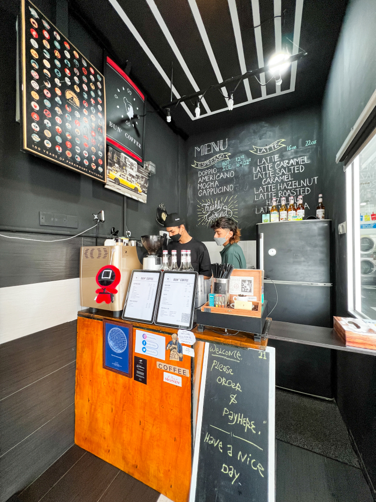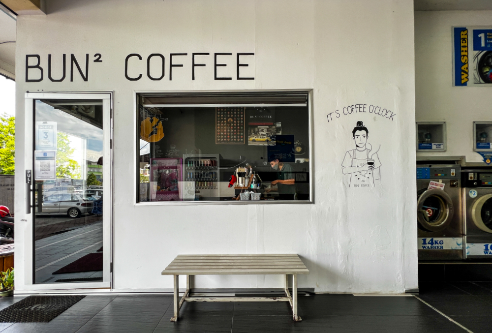 This charming Bangi coffee stop shares a space with a laundromat, serving up playful peanut butter lattes with style and smiles.