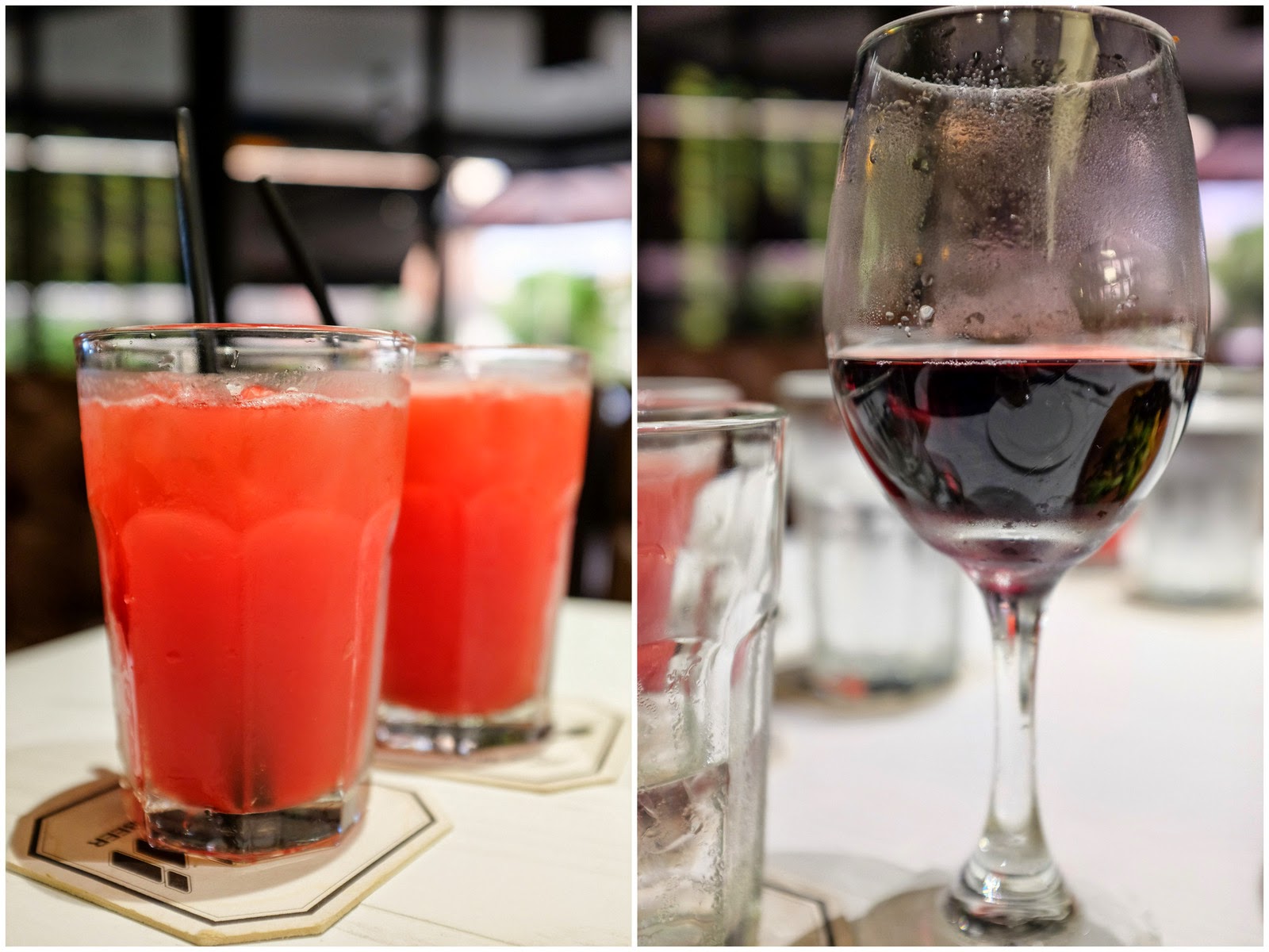 If that isn't enough pork, there's also pulled pork or smoked ham pizzas (RM18.90), pastas crowned with braised pork chop (RM19.90), or fries topped with pulled pork, one of the closest things we'll get to poutine for now (RM11.90), washed down with a choice of red - watermelon juice or wine.
