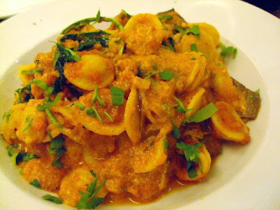 Orecchiette pasta with roasted eggplant, sundried tomatoes, wild rocket and ricotta cheese. The most successful pasta dish. A flavourful combo of well-prepared ingredients.