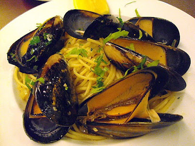 Australian black mussels with extra virgin olive oil, wine and parsley. Skip this; the mussels lacked flesh and the spaghetti was rather overcooked.