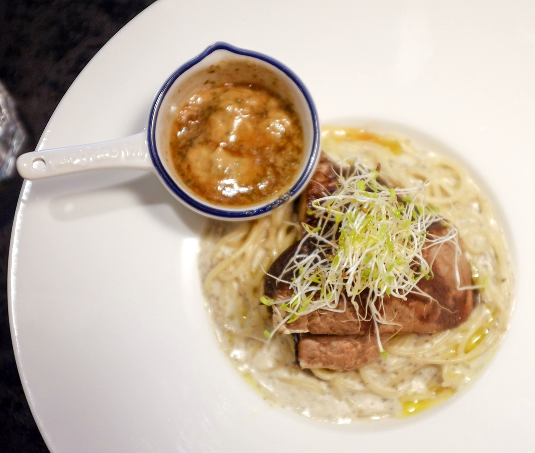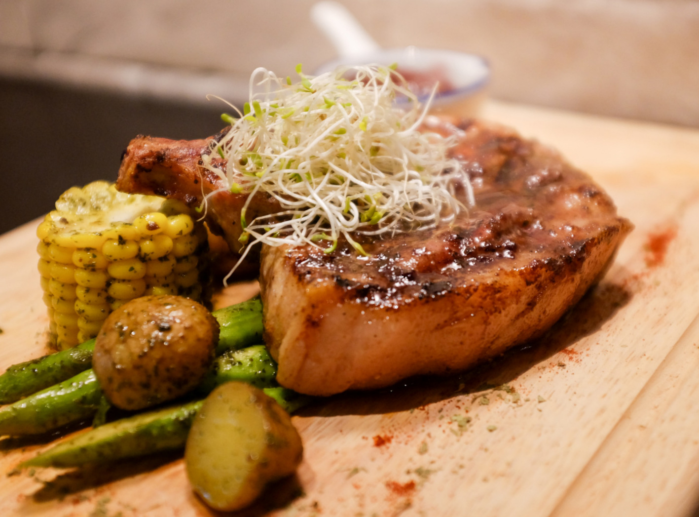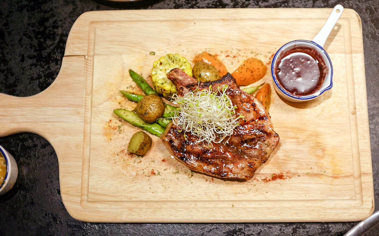 Buttergrill has a brilliant hook, promising recipes paired with an inventive variety of butters, infused with the likes of foie gras, spicy salted egg yolk, red wine & figs, orange ginger, lemon chilli, mustard or spicy miso. We tried the first three - there turned out to be a disconnect between what we expected (creamy, luscious butter, with nuanced flavours) & the reality (melted butter that would be better described as butter sauces, all unctuously oily & not quite coalescing with their additives). The butter proved a distraction for dishes like the spaghettini with grilled portobello & white truffle paste ($20; too cloying to finish), Vietnamese king prawns ($36 with a choice of one butter; costly for rudimentary prawns) & Canadian Primrose Farm bone-in pork chop ($30 for 300 grammes with one butter; our favourite of the bunch, a potently fleshy-fatty sacrament of succulence).