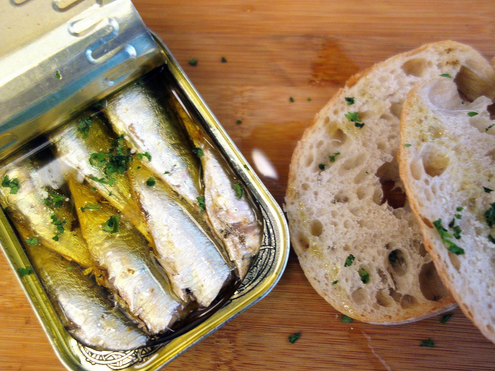 Vintage Brittany sardines (RM29), aged in the can with olive oil for several years; firm-fleshed fish, with what might be considered a marginally more mellow flavour compared to typical sardines.