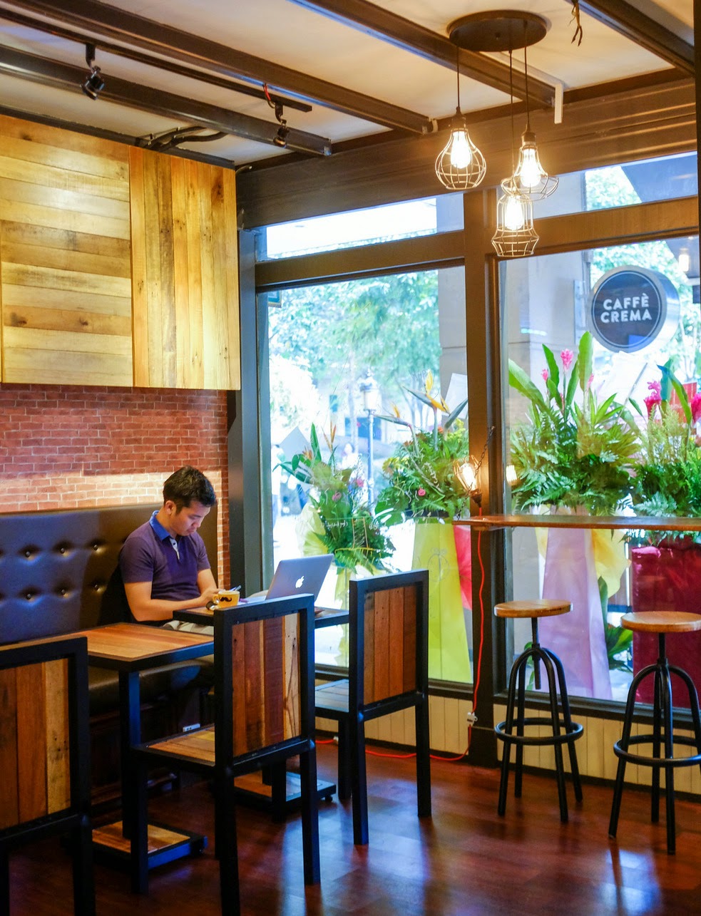 Checking out a couple of cosy new cafes, both warm & woodsy, starting with Caffe Crema at Plaza Mont Kiara.