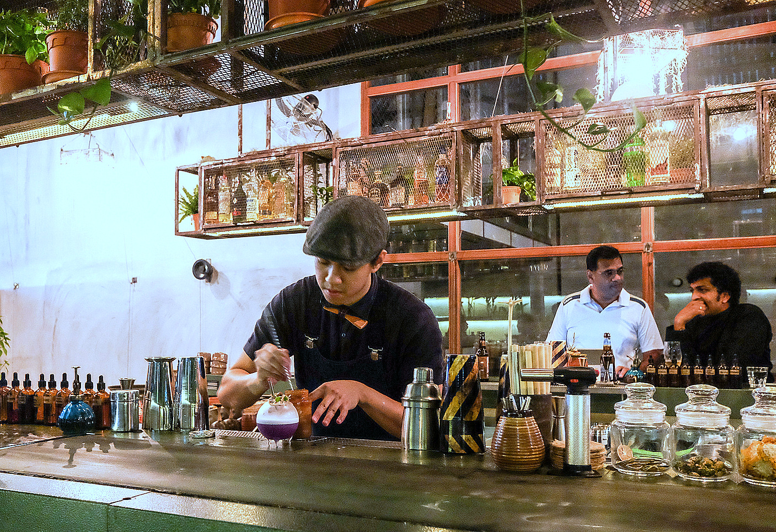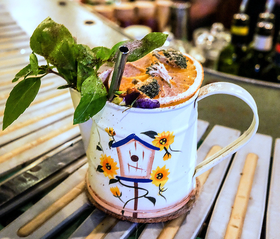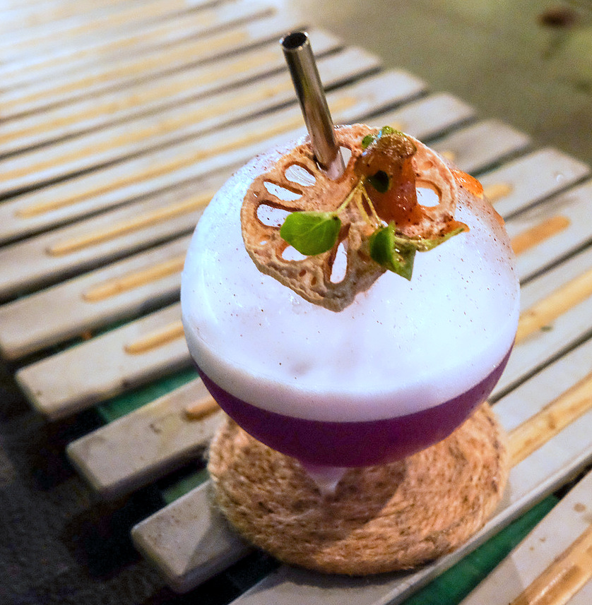 Case Study's oeuvre (sketched out on a menu made of APW's recycled paper) reflects a brazen sense of creativity run wild, blending the familiar with the peculiar to pleasurable effect - case in point, the Mexican Cantarito partners shiitake mushroom-infused tequila with red bell pepper water, salted wildflower honey & aperitivo rinomato for a creation that'll surprise with its citrusy earthiness. The purple-hued Terrarium (practically every cocktail is named for the vessel that bears it, served on a printing conveyor belt bartop) is also a delight, showcasing lotus root gin with sweet potato, Indian borage tincture, butterfly pea & apricot infusion - Alvin & Joel believe in casting their net as wide as possible for their influences, going beyond purely Asian inspirations in their ingredients. But their nod to homegrown muses remains palpable - Case Study's many potted herbs, flowers & other plants are harvested for its beverages, with pickling, dehydrating & jam-making all also performed on-site.