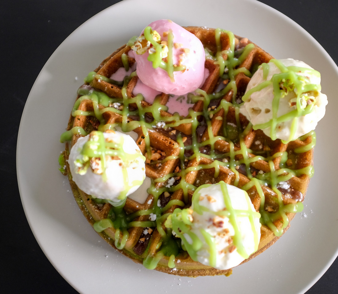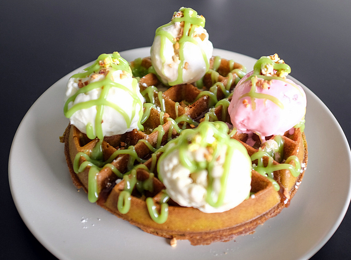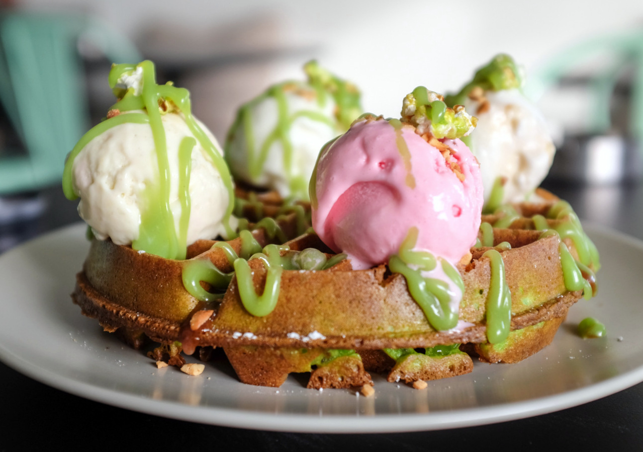 G-Lat's entire assortment is tempting enough that choosing only one or two scoops might be tortuous - flavours include kaya toast, soursop, bandung, neslo, durian, or coconut + gula melaka (RM7 per scoop, RM15 for two, RM17 for three). Flavours are satisfying executed; everyone will have a personal favourite, but if a suggestion is desired, neslo & coconut gula melaka are notably tasty. Customers can have four scoops on a dense, crispy pandan waffle with lots of kaya & bits of popcorn that's named Bulatan Kampung Pandan (RM24) - a witty moniker befitting of a cool destination that dares call itself Chaplang Kafe.