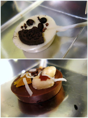 From top to bottom: Good Morning (Belgian milk chocolate, mini cornflakes, sultanas & raisins), Miss Sunshine (Belgian dark chocolate, goji berries, dried cranberries & dried roselle), Coffee-O (Belgian white chocolate, Colombian coffee beans, Oreo cookie & cocoa nibs), Hawaiian Paradise (milk choc, coconut flakes, cacao nibs, dried pineapples, hazelnuts) & Candy Union (white chocolate, Milo nuggets, M&Ms).