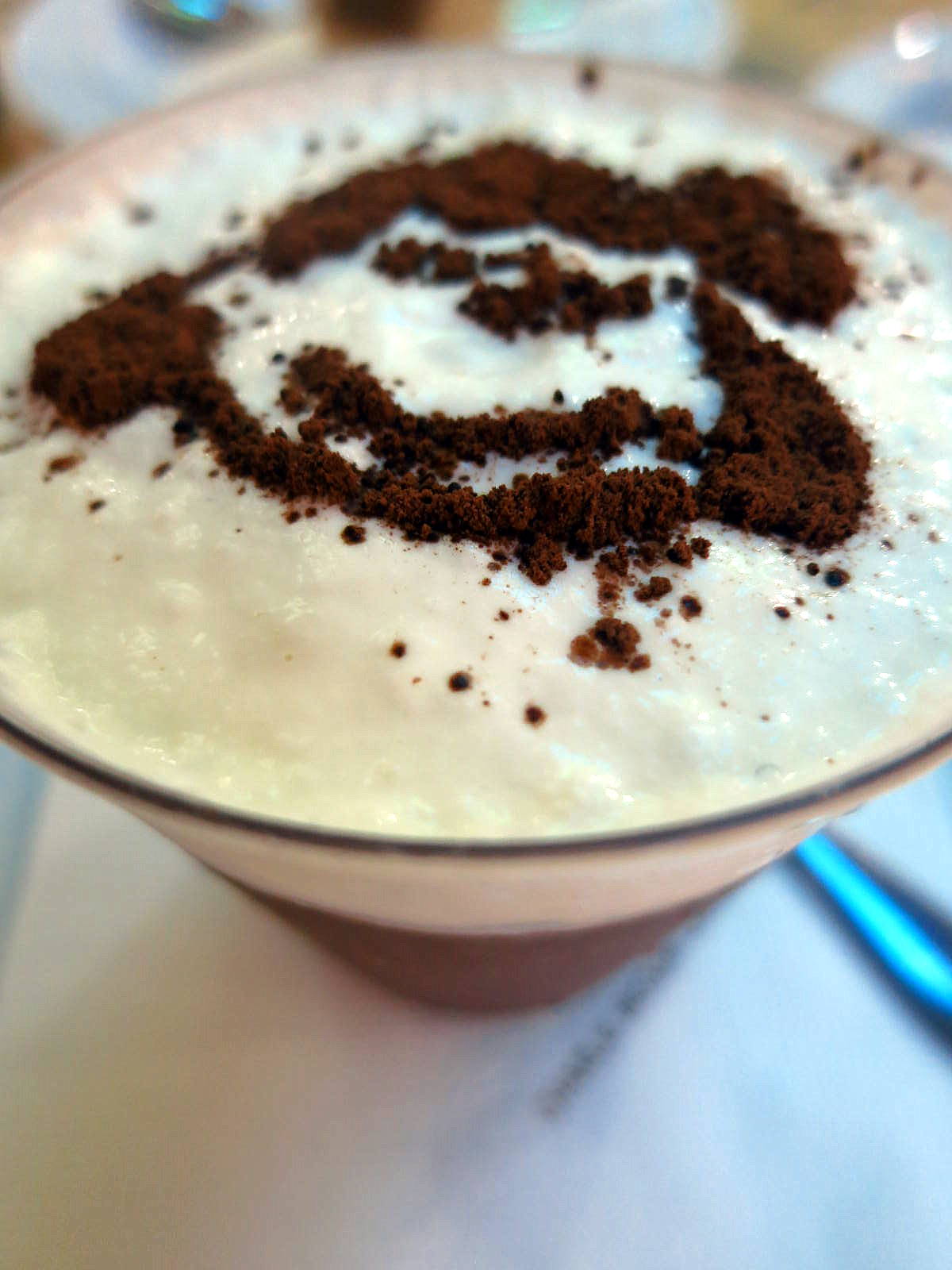 Chocolate mousse, with a somewhat off-kilter flavor & strange graininess (though we liked its creamy top). Based on desserts, the cafe needs tons of work in the food department; still, its fun surroundings make it worth a visit.
