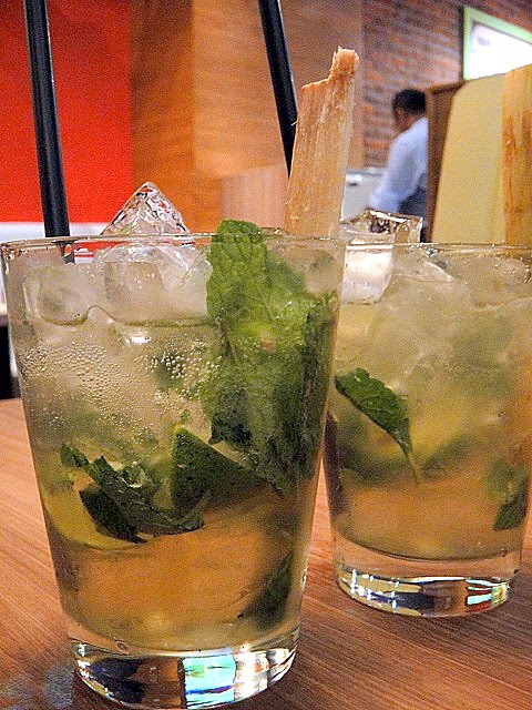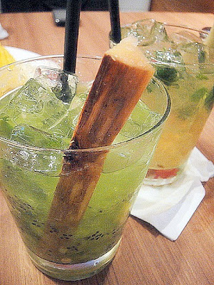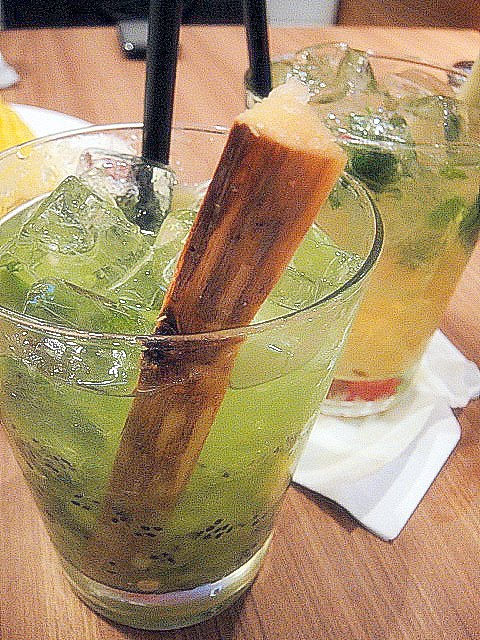 Kiwi fruit & nutty Mojitos (the latter seems laced with hazelnut frangelico liquor).