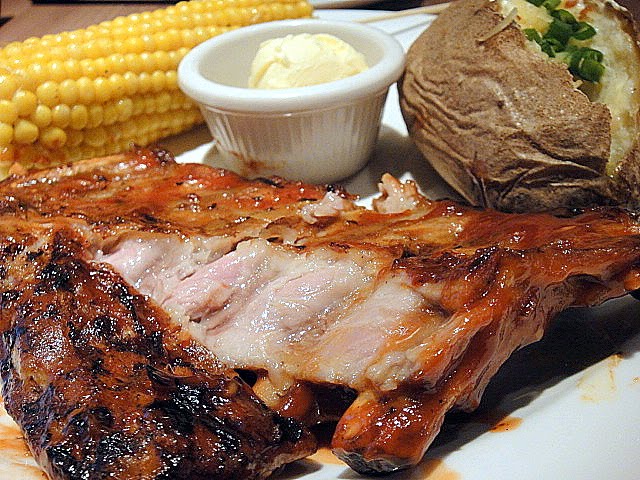 Kentucky Bourbon ribs, slow-roasted over hickory wood for that succulent, savory smokiness that makes pork ribs irresistible. Finger-lickin' good _ more so than any ol' fried chicken.
