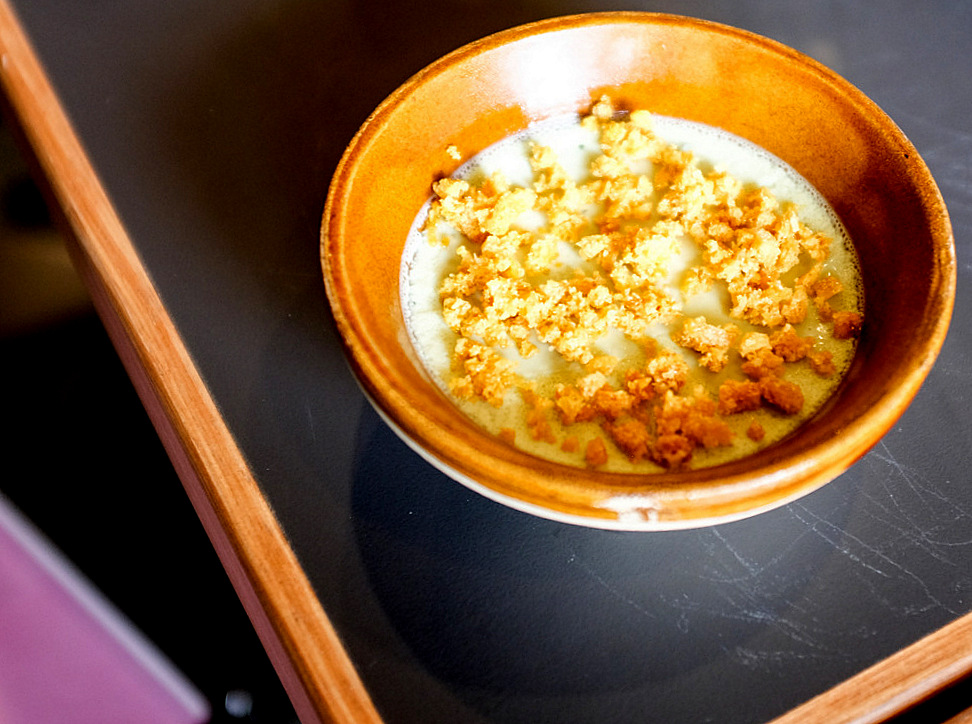 There's only one dessert in Chocha's soft-launch selection, but it leaves an impression: A green-hued reinterpretation of creme brulee, tinged gently with ulam raja & Thai basil, sprinkled with honeycomb candy that simulates the brulee's crunch (RM15).