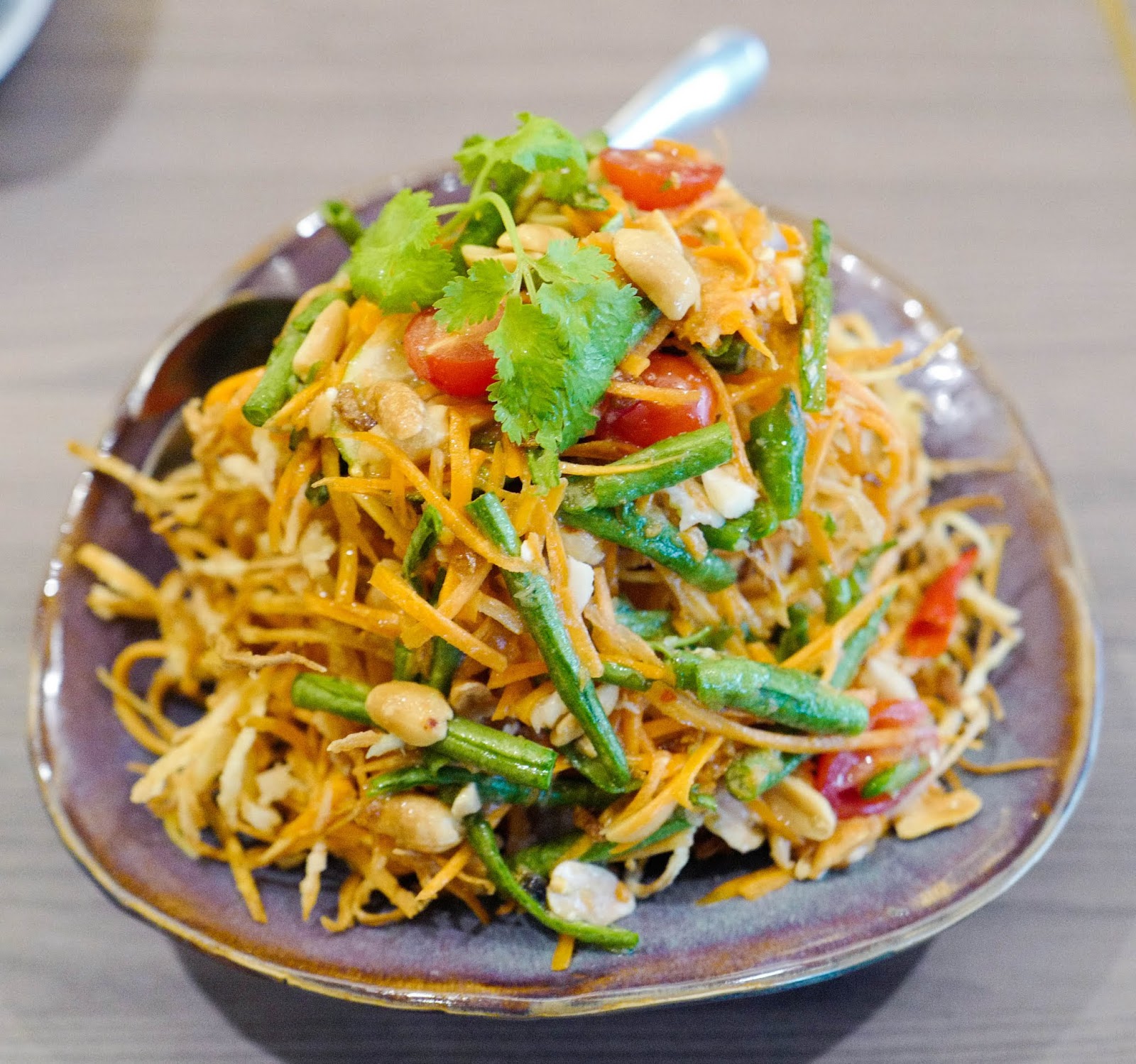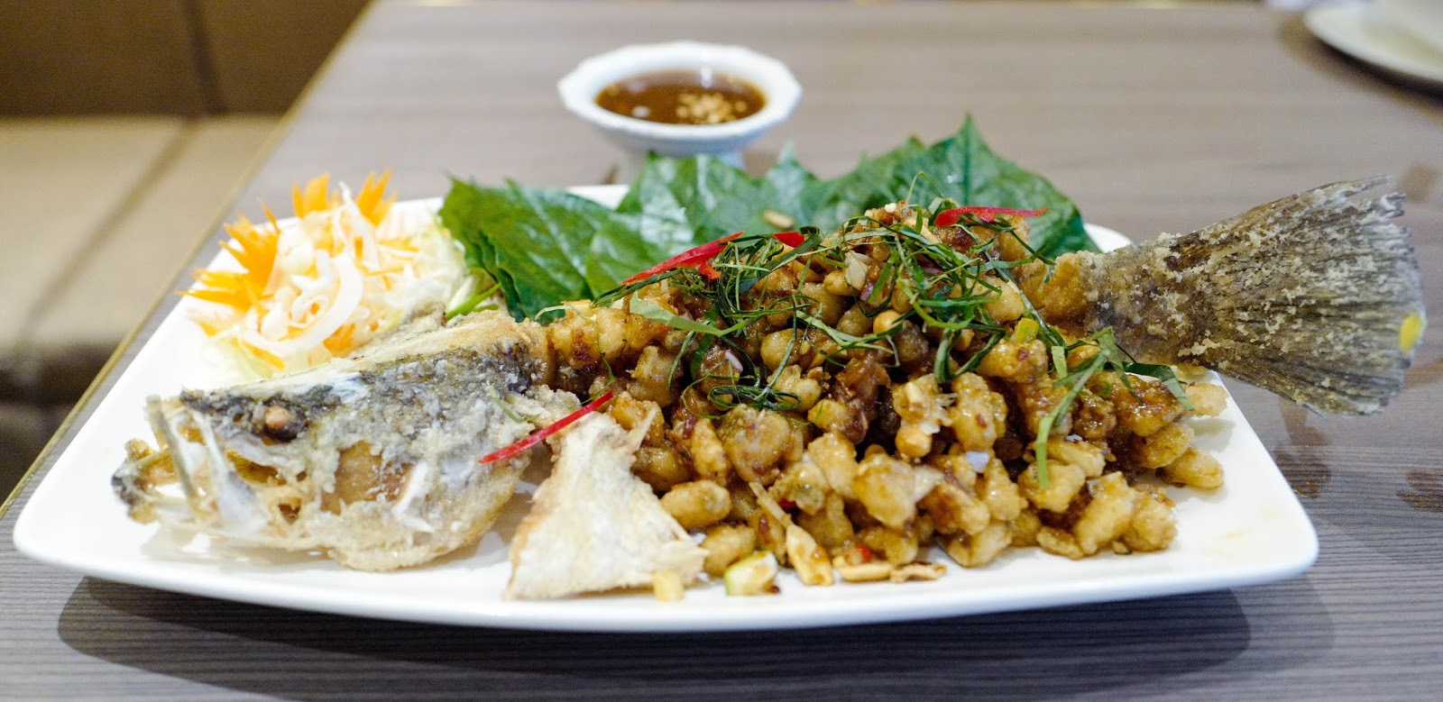 The Pla Thod Mieng Kam is even more memorable, combining fried fish with the famous mieng kam salad starter - the cubed fish flesh is mixed with shallots, roasted coconut, lime, chillies, nuts and the other staple ingredients of mieng kam, to be consumed wrapped together in zesty leaves (RM52.70).