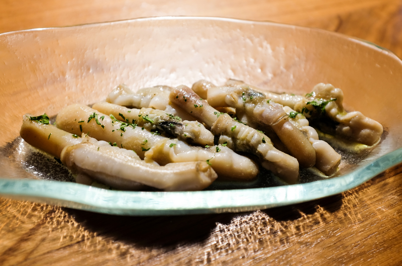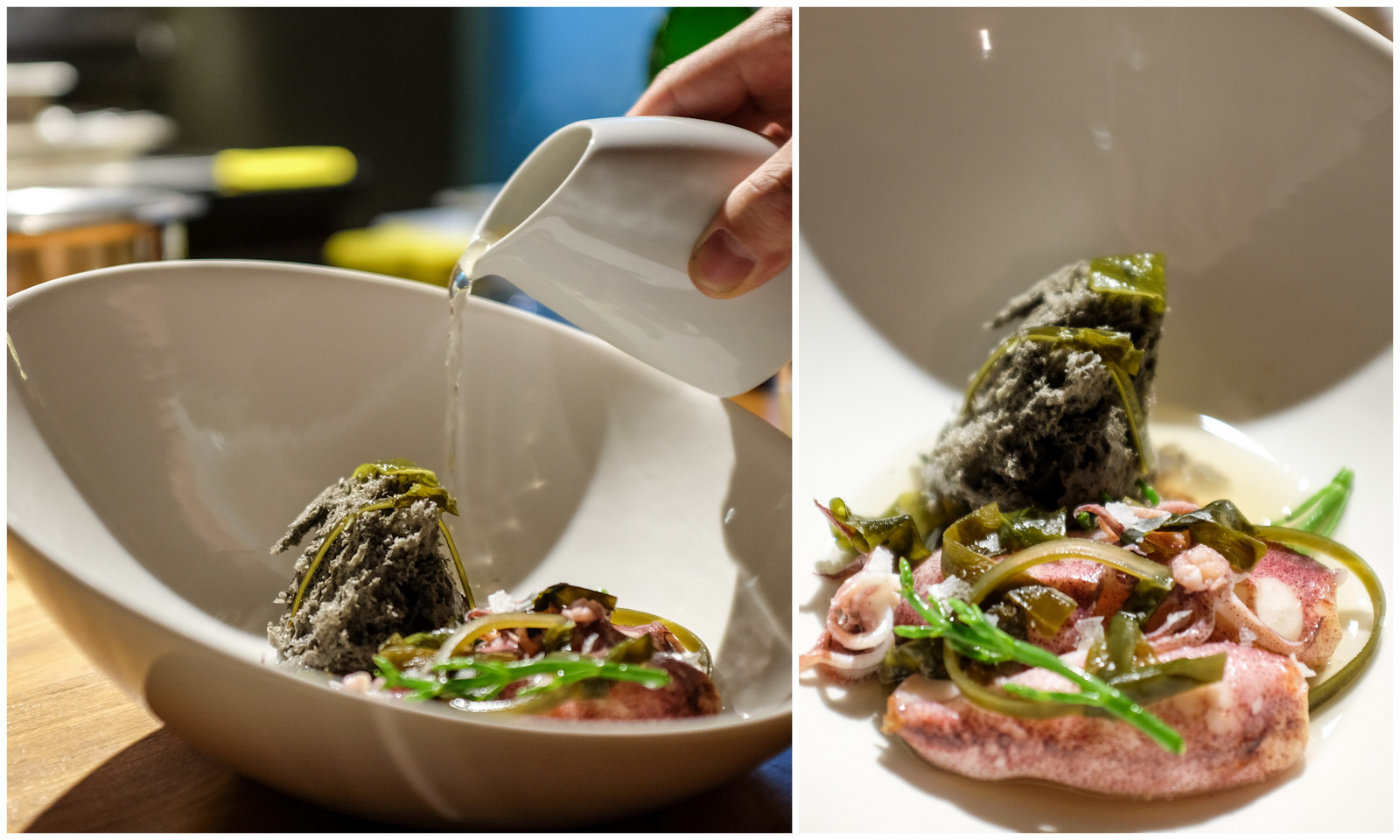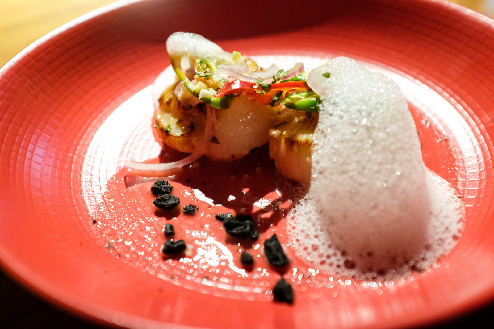Coquo signals a fresh turn for Toni in crucial ways - here, he challenges & stretches himself by relying on an impressive diversity of both Malaysian & imported produce, pushing beyond his original Spanish know-how to incorporate contemporary cooking techniques that transcend national borders. A glance at the menu illustrates Coquo's sense of ambition & adventure: Razor clams cooked in brine infused with Pedro Ximenez sherry (RM21) & squid partnered strikingly with a 'miso sea stone' toast-like creation, seaweed salad & light okra stock (RM32) can be traced easily to Pulau Ketam, while meaty Mediterranean anchovies, pickled with parsley oil (RM4 apiece), & plump Hokkaido scallops, cured with calamansi in a twist on ceviche, made textured & tantalising with aromatic coconut air & piquant black olive crumbs (RM9 apiece), emerge from more distant shores.