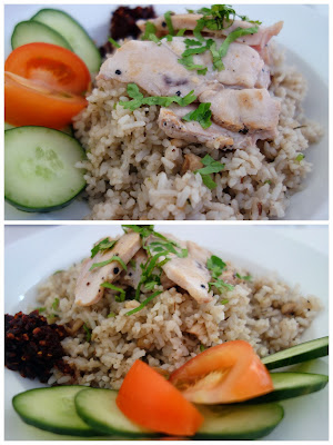 Cross-Leggeds food displays not only creativity but complexity, showcased in this steamed rice powerfully flavored with smoked chicken essence, herbs & butter in a stone pan, then plated with smoked chicken breast slices. RM15.