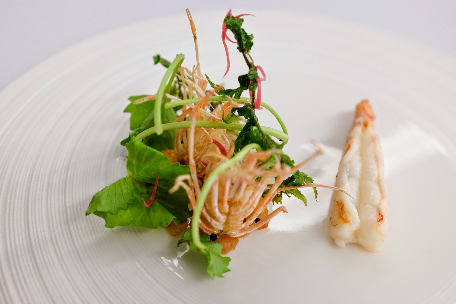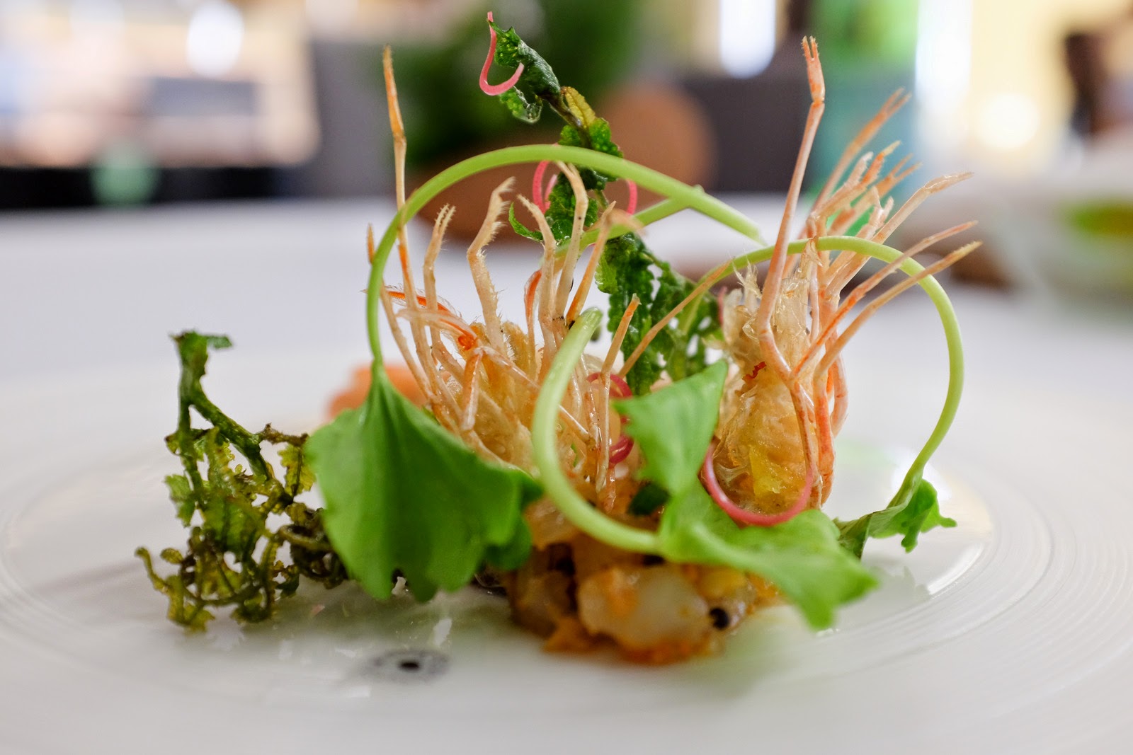 It helps that Teoh has assembled a skilled team, from manager Hafriz, who commands the floor, to kitchen maestros like Sarah, Yik Siang & Tristan whose sparkling resumes spark confidence in their mastery of these prawns - prepared partly as a tartare & partly cooked - with fiddlehead ferns & pegaga. Crustacean heads crunchy enough to consume whole, rich with roe.