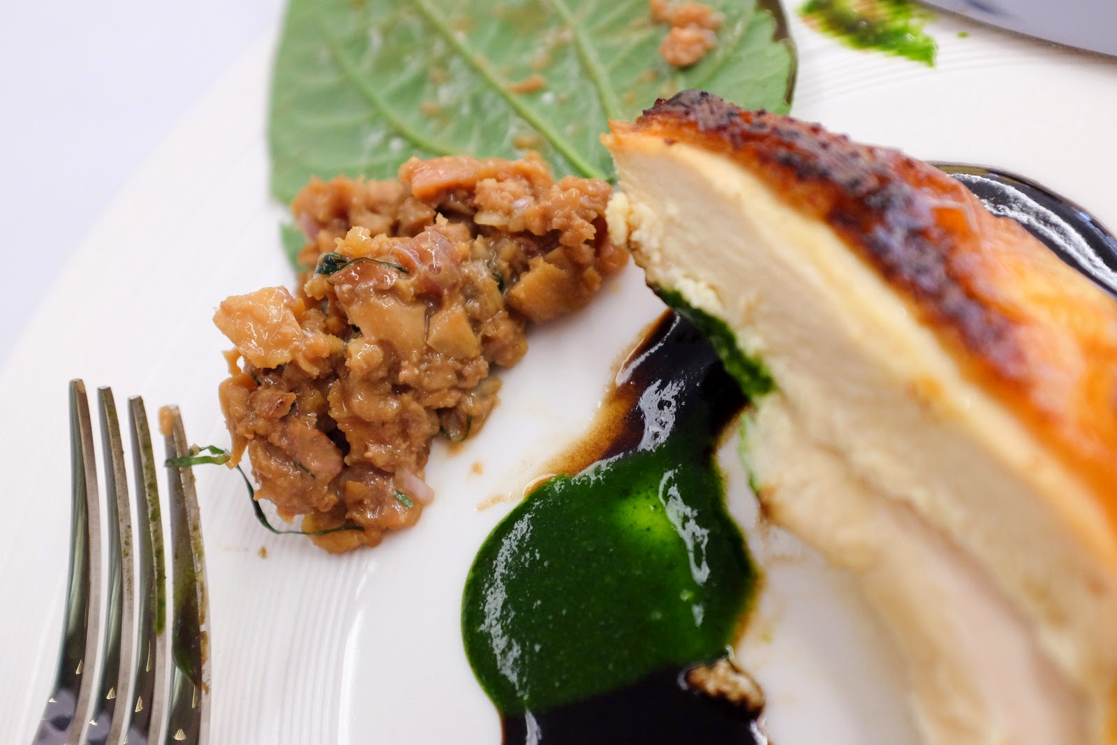 Love this one: Charcoal fire-roasted chicken, subtly basted with whey, coupled with chicken liver ragout wrapped in kaduk, made captivating with a beautifully robust puree of buah keluak & kailan, its look inspired by Noma, where Teoh fruitfully staged for a fortnight. In a sense, Dewakan might be the closest thing in Malaysia to that Danish restaurant & its philosophies.