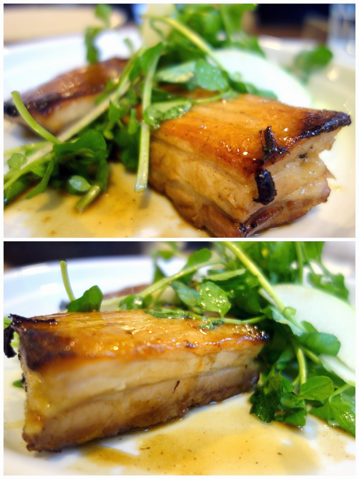 Don't skip the hearty pork belly either, irresistible with a sweet-to-enhance-savoury apple reduction & watercress (RM44).