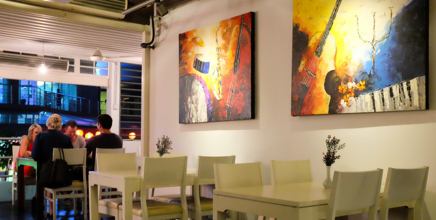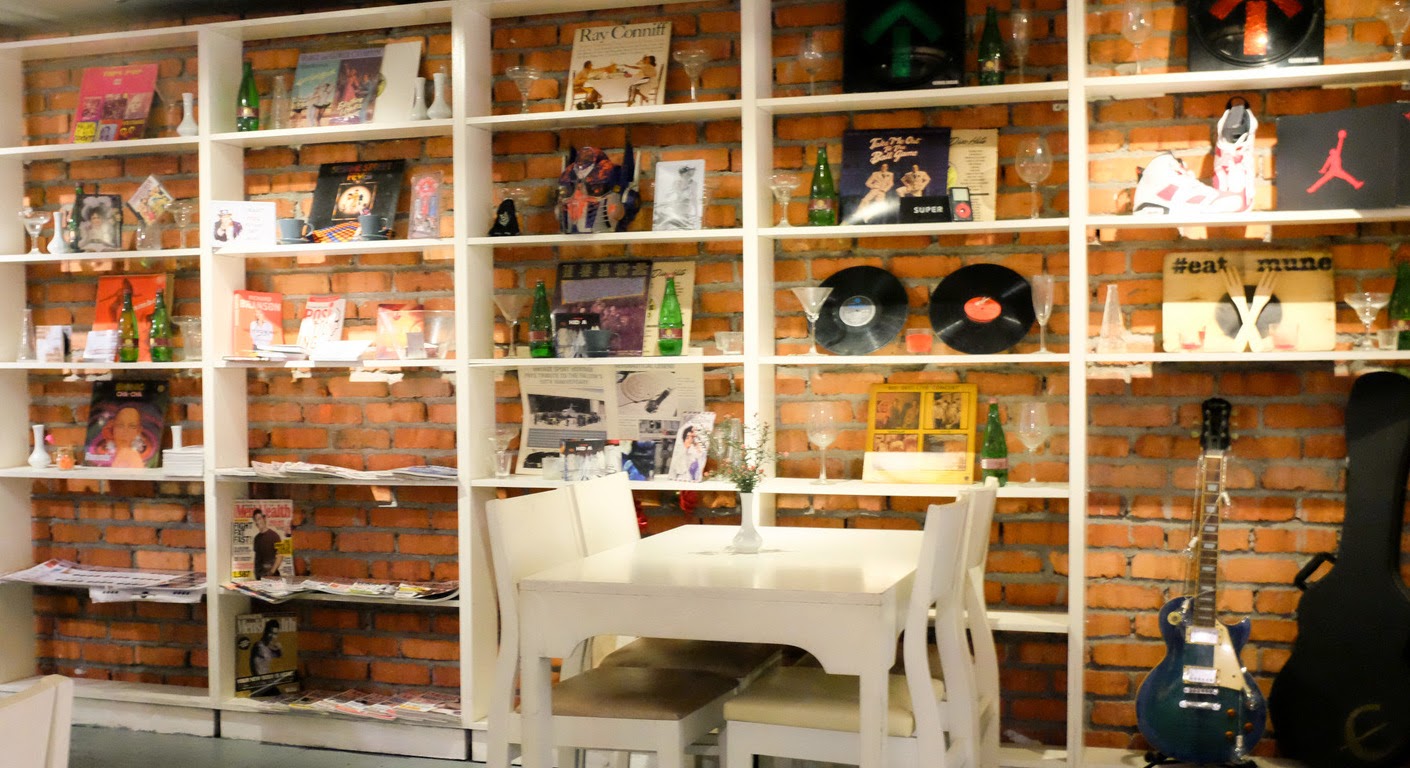 This first-floor outlet features an unorthodox set-up: At first glance, it's an elegant space with warm, exposed-brick hues & soulful paintings that would fit into an upmarket Italian restaurant. But the shelves signal that this is a quirky eatery, lined with Radiohead CD sleeves alongside men's health magazines, sport shoes & protein powder tubs.