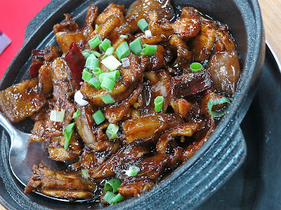 A crowd-pleasing classic: Pork belly with salted fish in claypot, steaming-hot & savory.