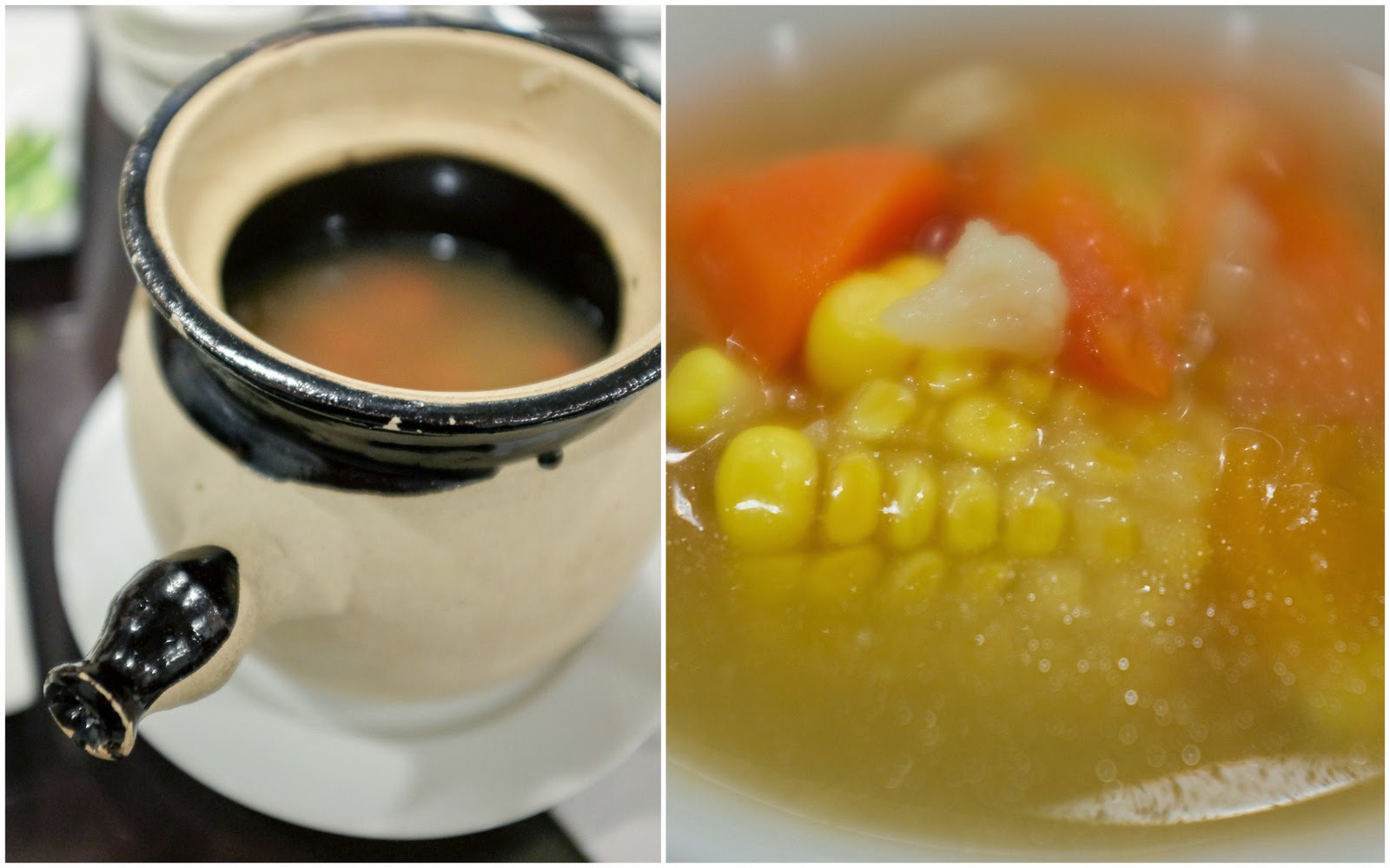 Simple pleasures: Fan Cai Xiang offers a soup of the day; if it's ABC soup when you visit, order it - a nourishing, soul-restoring broth with mock chicken meat, potatoes & corn. Wash your meal down with carrot & apple juice, then stop to contemplate the maxims on the restaurant's walls & perhaps purchase some take-home food products - proceeds from those go to the Tzu Chi Foundation. Many thanks to Fan Cai Xiang for hosting our meal here.