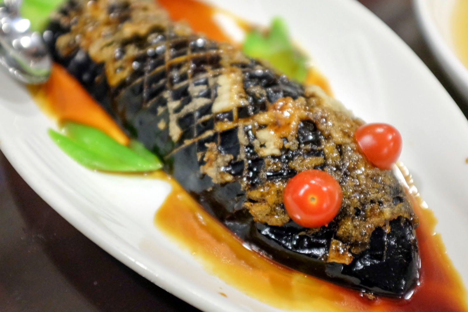 Fan Cai Xiang's kitchen marries inventiveness with proficiency to create triumphs of texture & taste - crisp-skinned, tender-bodied eggplant, shaped like a fish, swimming over a savoury sauce of Marmite & mushroom stock; dense pumpkin fritters, served warm in dim sum baskets; silken bean curd with natural, nuanced flavours, made from scratch at Fan Cai Xiang; & mock 'scrambled eggs,' captivatingly aromatic with Asian basil, mostly at crowd-pleasing prices of RM14-RM34 per portion.