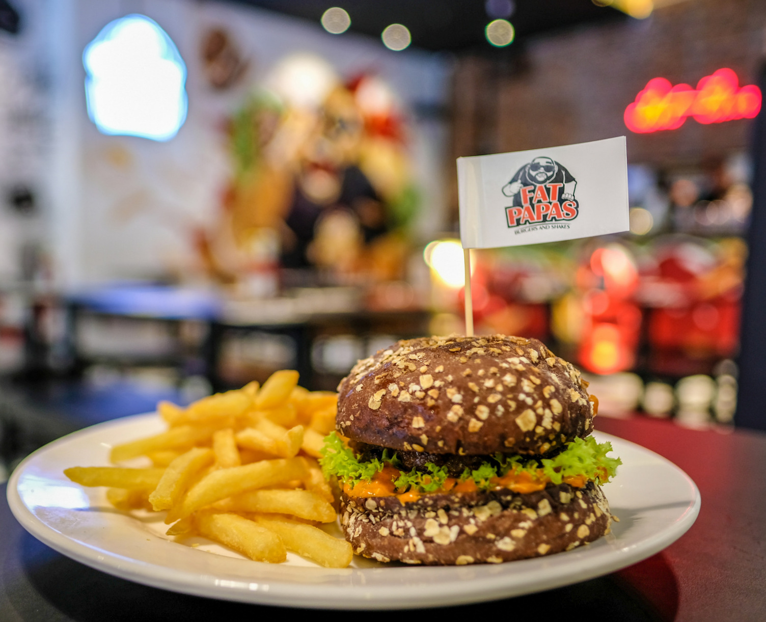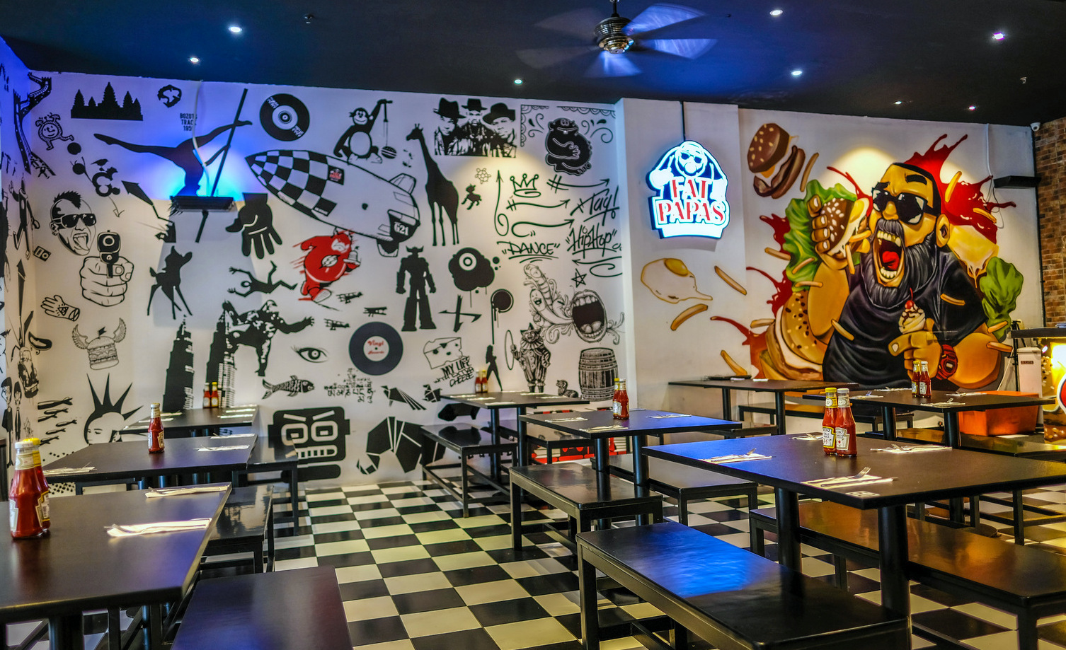 For Southeast Asian rap fans who step into FatPapas in Publika, the sunglasses-clad man portrayed in a splashy mural beside the counter might look familiar, clutching a huge burger in one hand and a milkshake in the other. That's Singaporean stage star Sheikh Heikel, who first shot to prominence when he won the Asia Bagus talent tourmament in the early 1990s; nearly three decades later, Sheikh and his wife have founded FatPapas, the halal spin-off of Singapore's FatBoy's The Burger Bar.