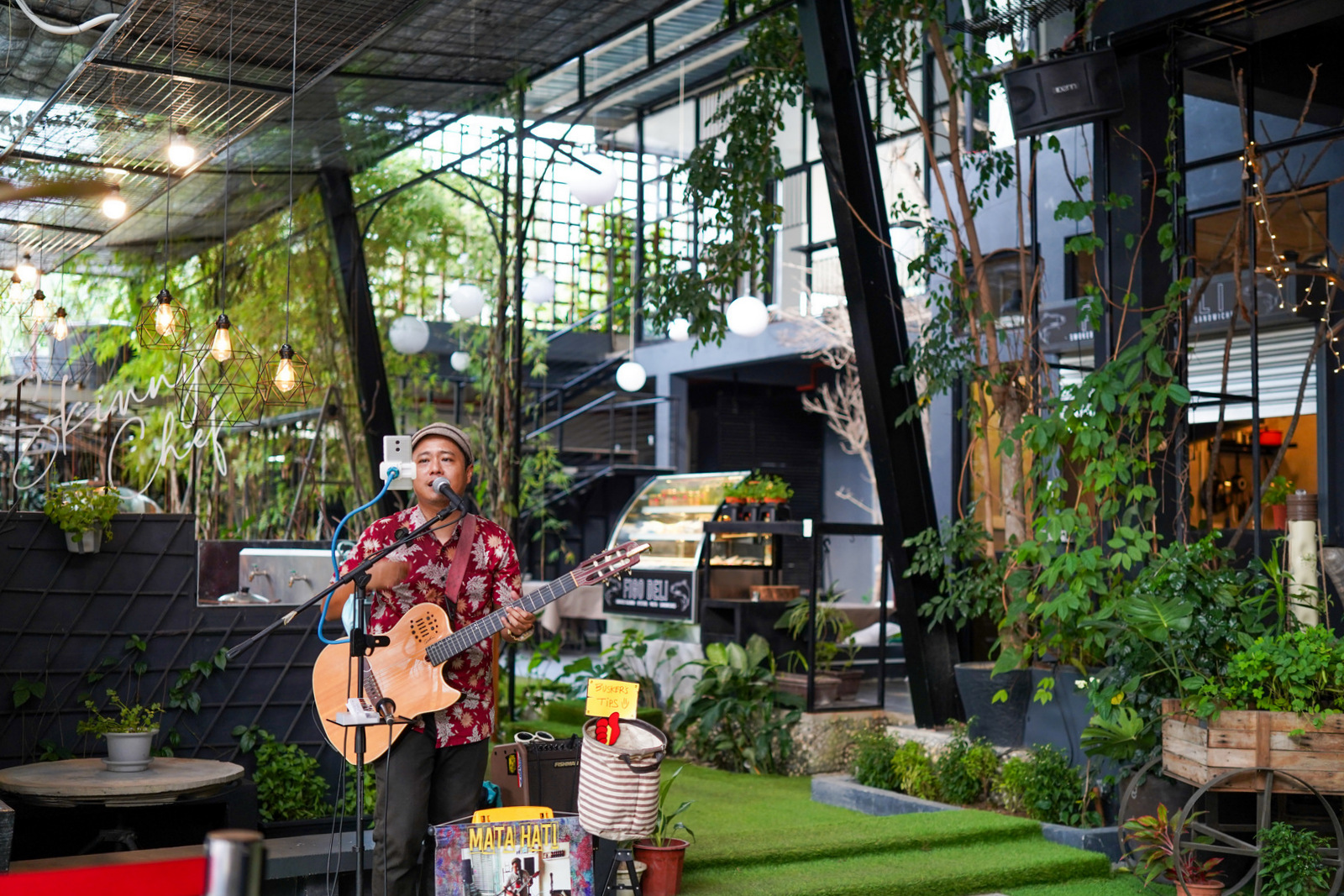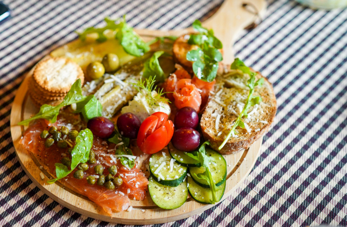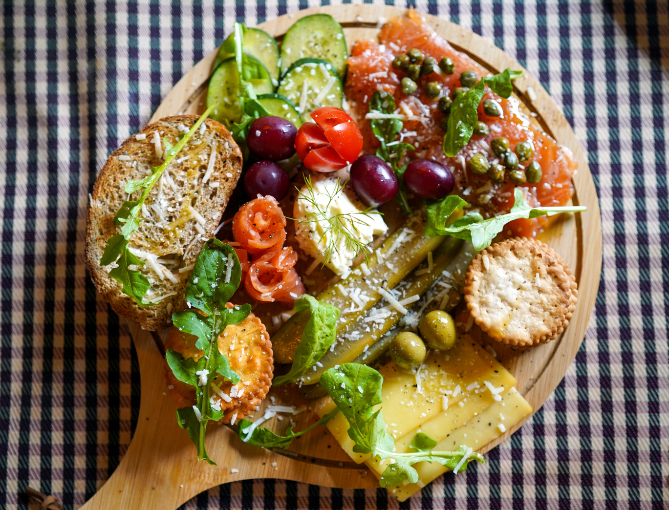 Figo Deli offers a beautifully boarded smoked salmon and cheese platter that customers can savour in a leafy setting, sometimes with live busker-style music as the sonic backdrop.