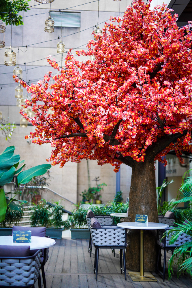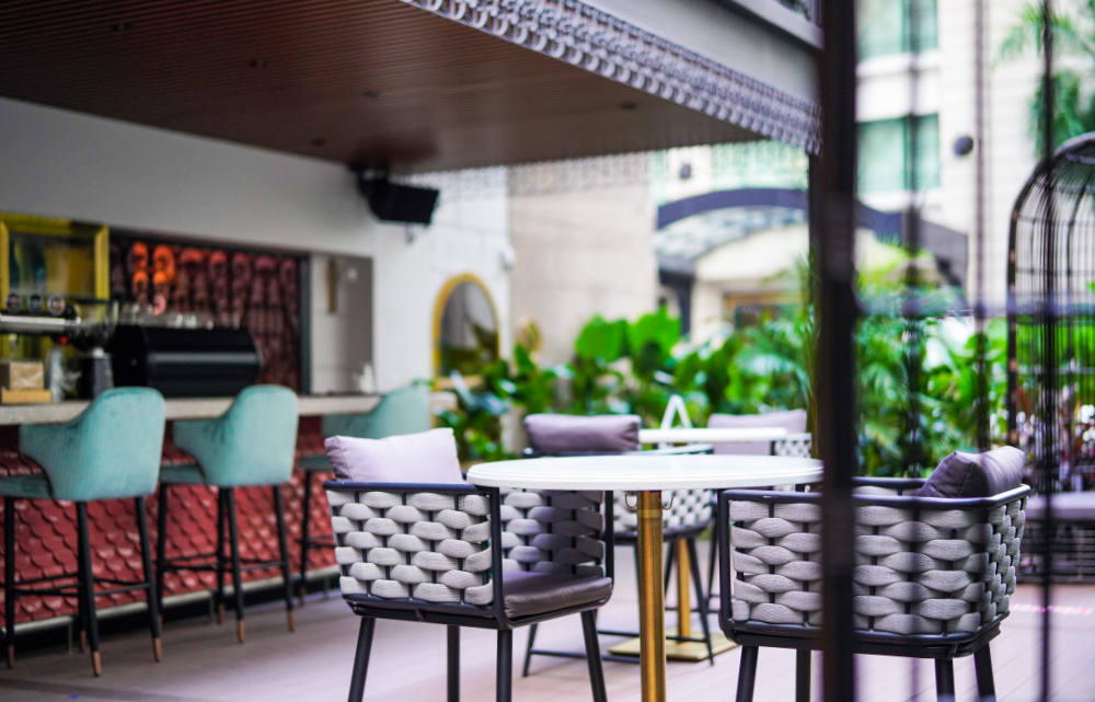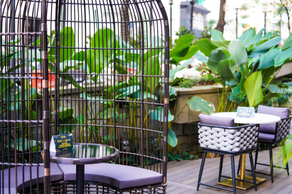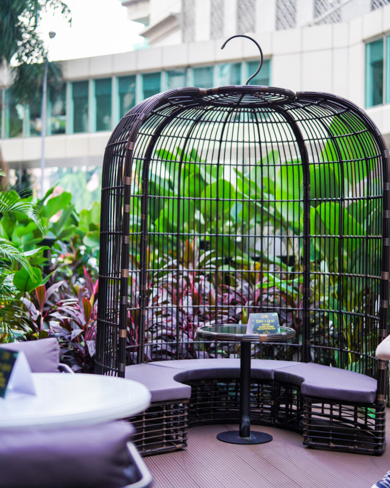 Finch's alfresco area is a beautiful space for an outdoor dinner, a calm hideout from Bukit Bintang's bustle as day turns into dusk, a wonderland whimsically bedecked with birdcages both big and small, circling a flamboyant, scarlet-blossoming tree.