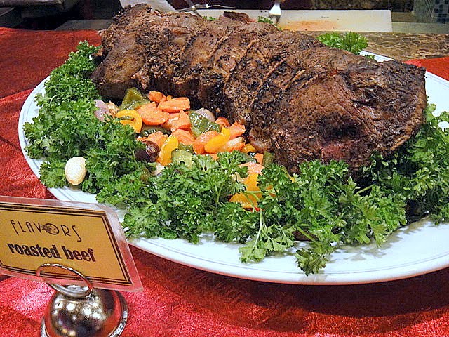 Log cakes, stollen, puddings, fruit cakes _ enough desserts to make every belly as bounteous as Santa's. Service at Flavors is reasonably attentive & efficient, with used plates regularly cleared & empty glasses of water replenished.