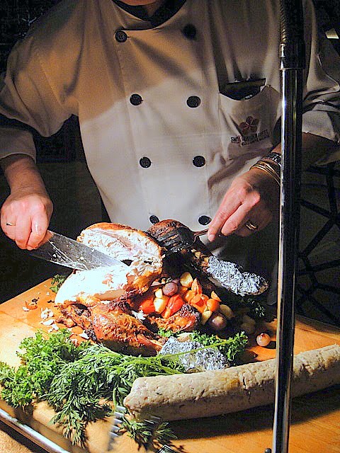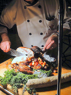 Much meat & various veggies build a balanced meal to make the spirits bright. Quality-wise, it's not top-flight though _ the duck confit with orange zest might seem leathery & overcooked.