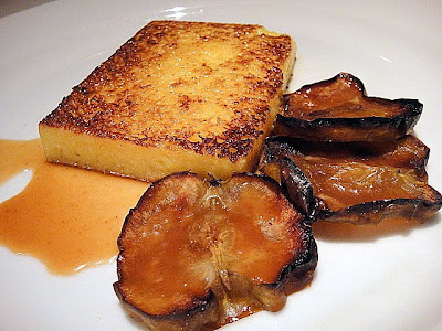 French toast with rum raisin sauce & baked apples. Unforgettable decadence; the toast is dense yet astonishingly soft, drenched in the sweetest of nectars.