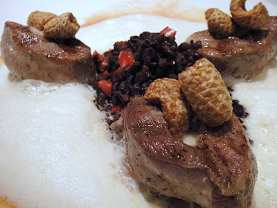 Skinless grilled duck slices with haricot bean mousse, maple cider honey & crisp grain cones in garlic emulsion. A protein-packed recipe; probably the outlet's healthiest offering, considering it doesn't serve any substantial salads.