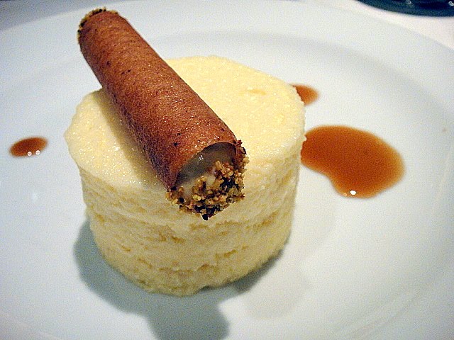Iced green apple souffle with cinnamon crumbs & tarte tatin. Refreshingly chilly.