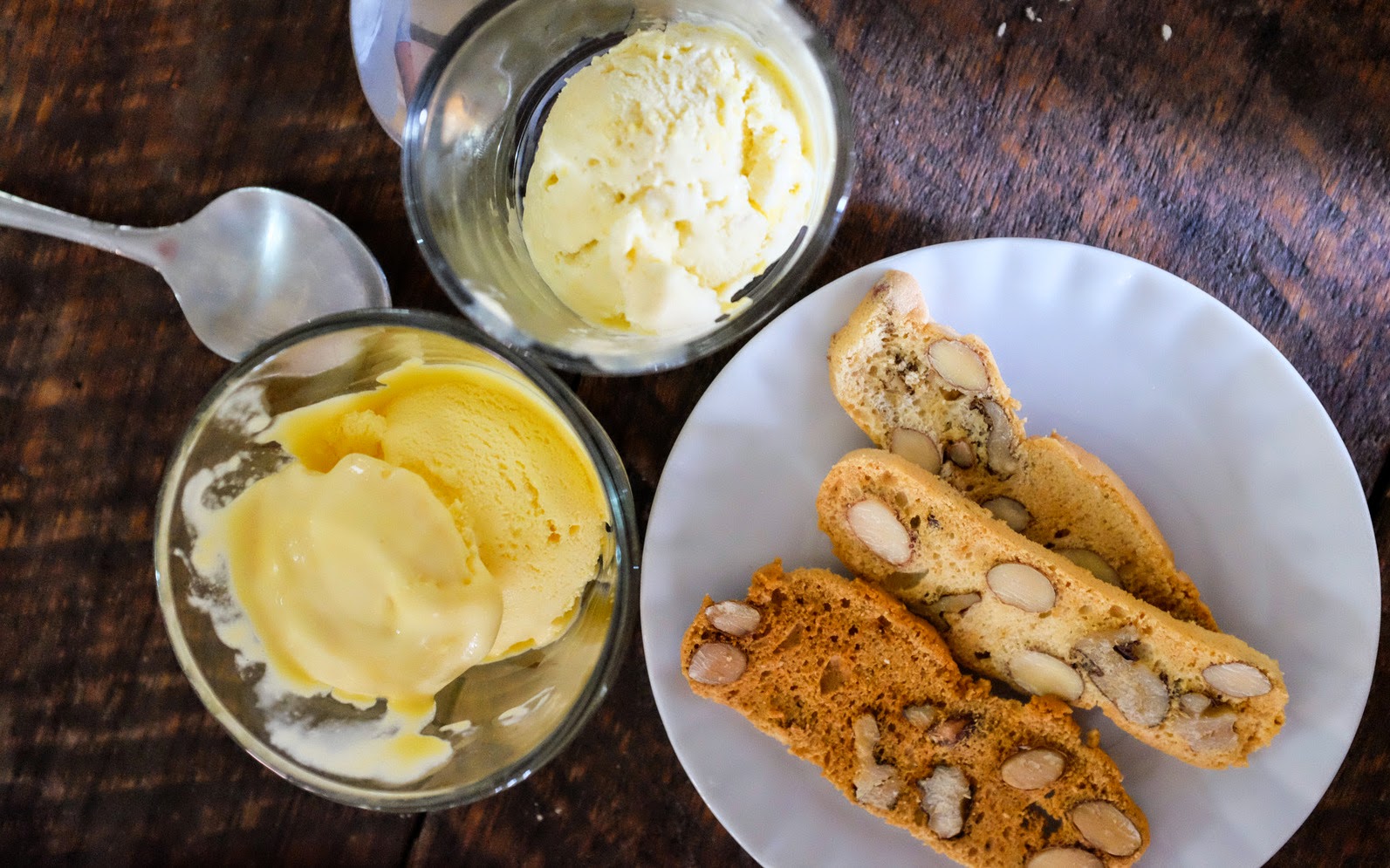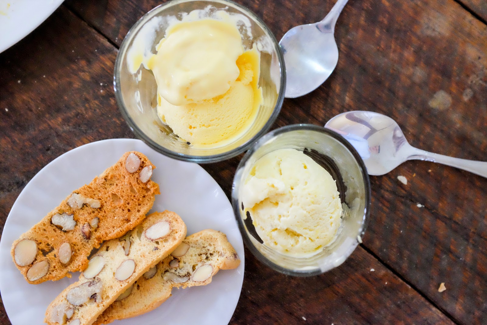 Home-made fruity ice cream, a luscious treat that relies on durians, mangoes & passion fruit from Phang's neighbours, accompanied by her own-baked biscotti. At Garden To Table, guests get to know exactly where their food comes from.